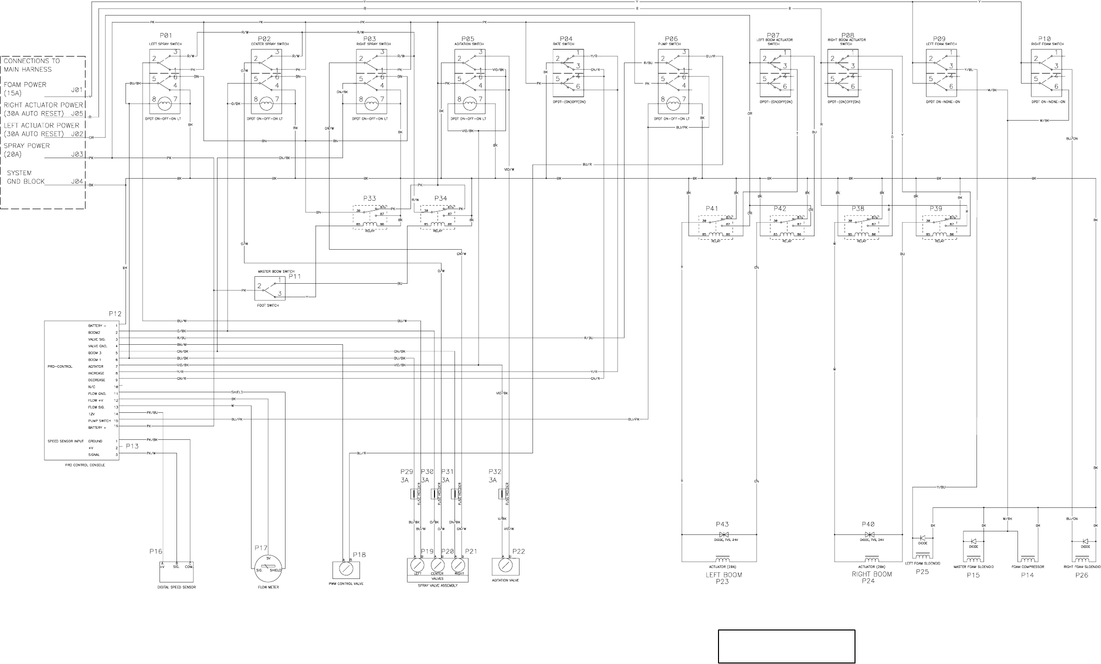 - Spray Pump, Agitation and Boom Control Switches