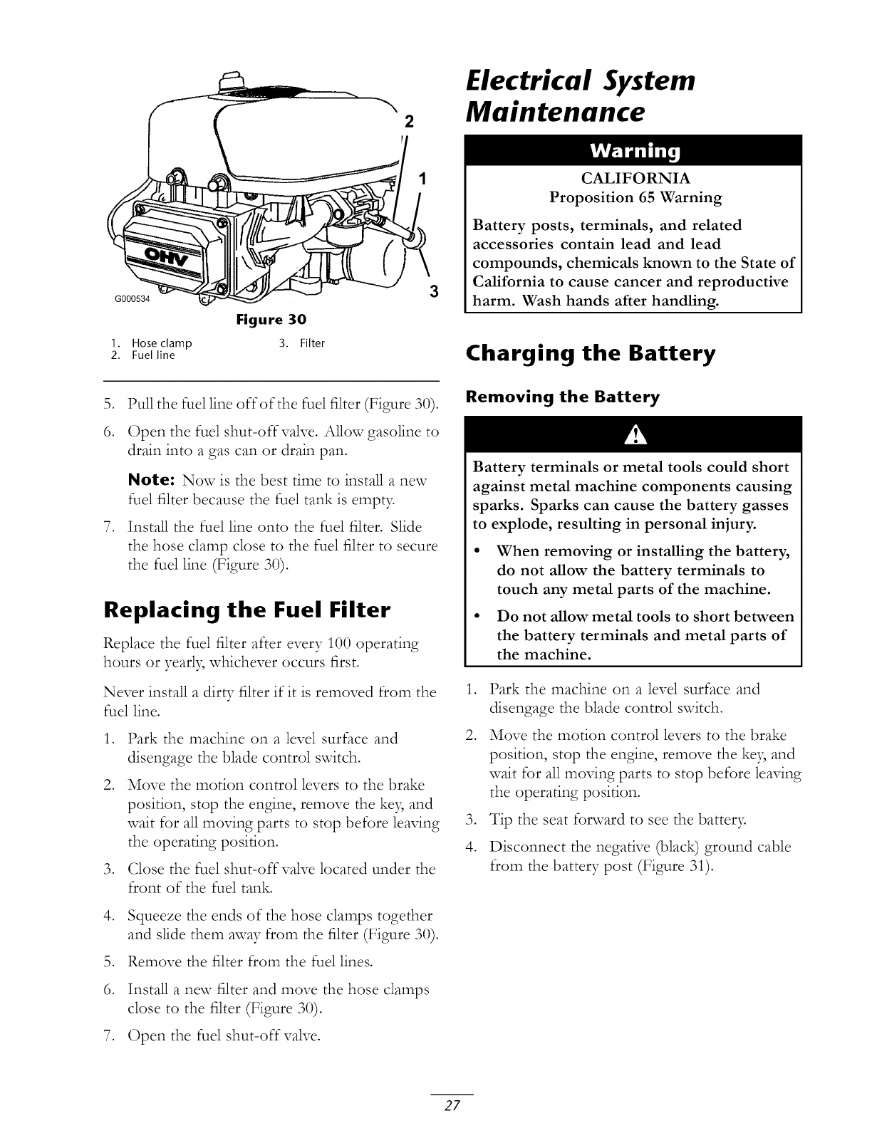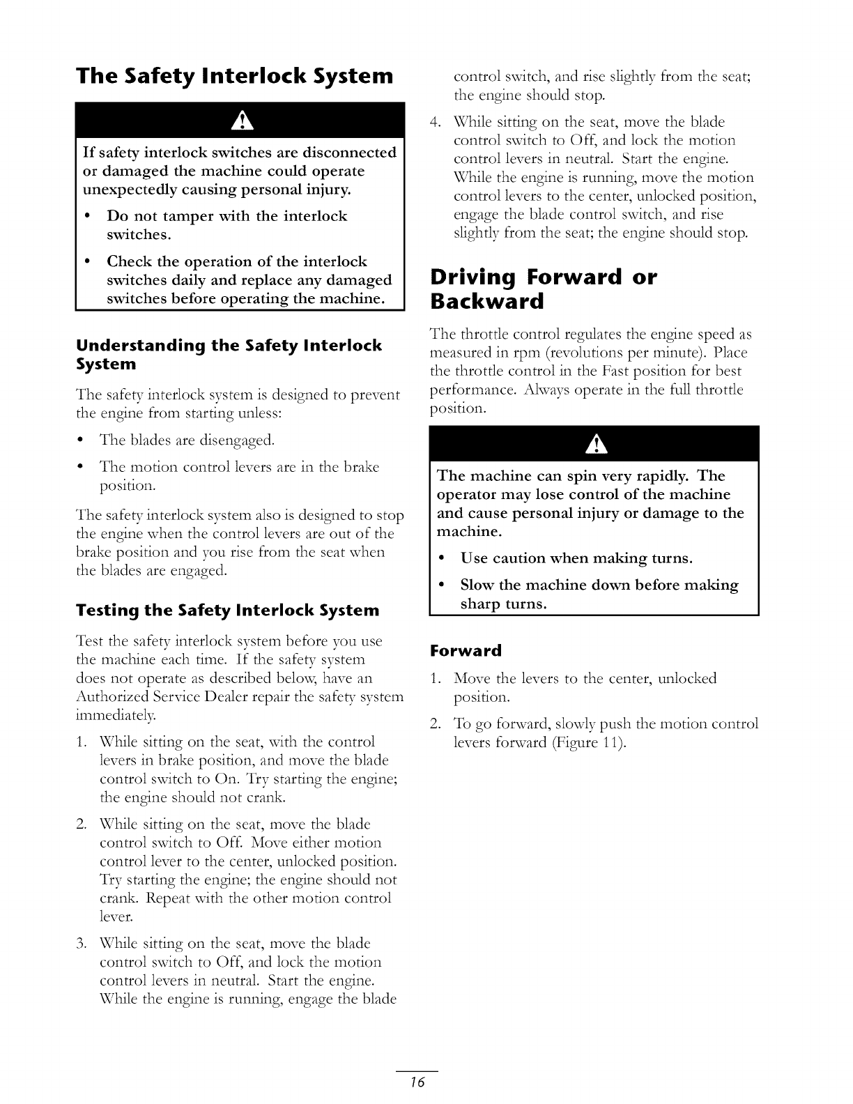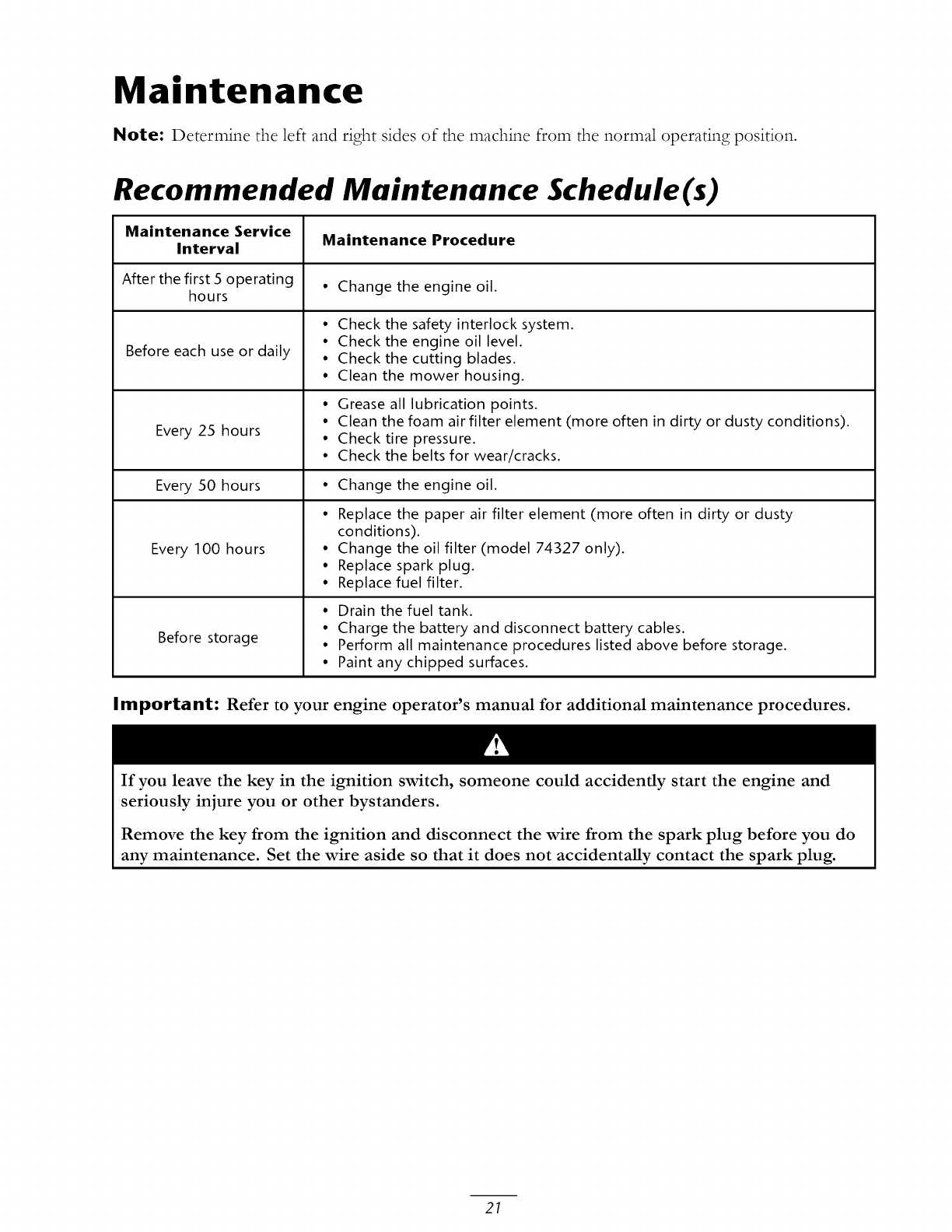 maintenance procedures described in the operator's manual.