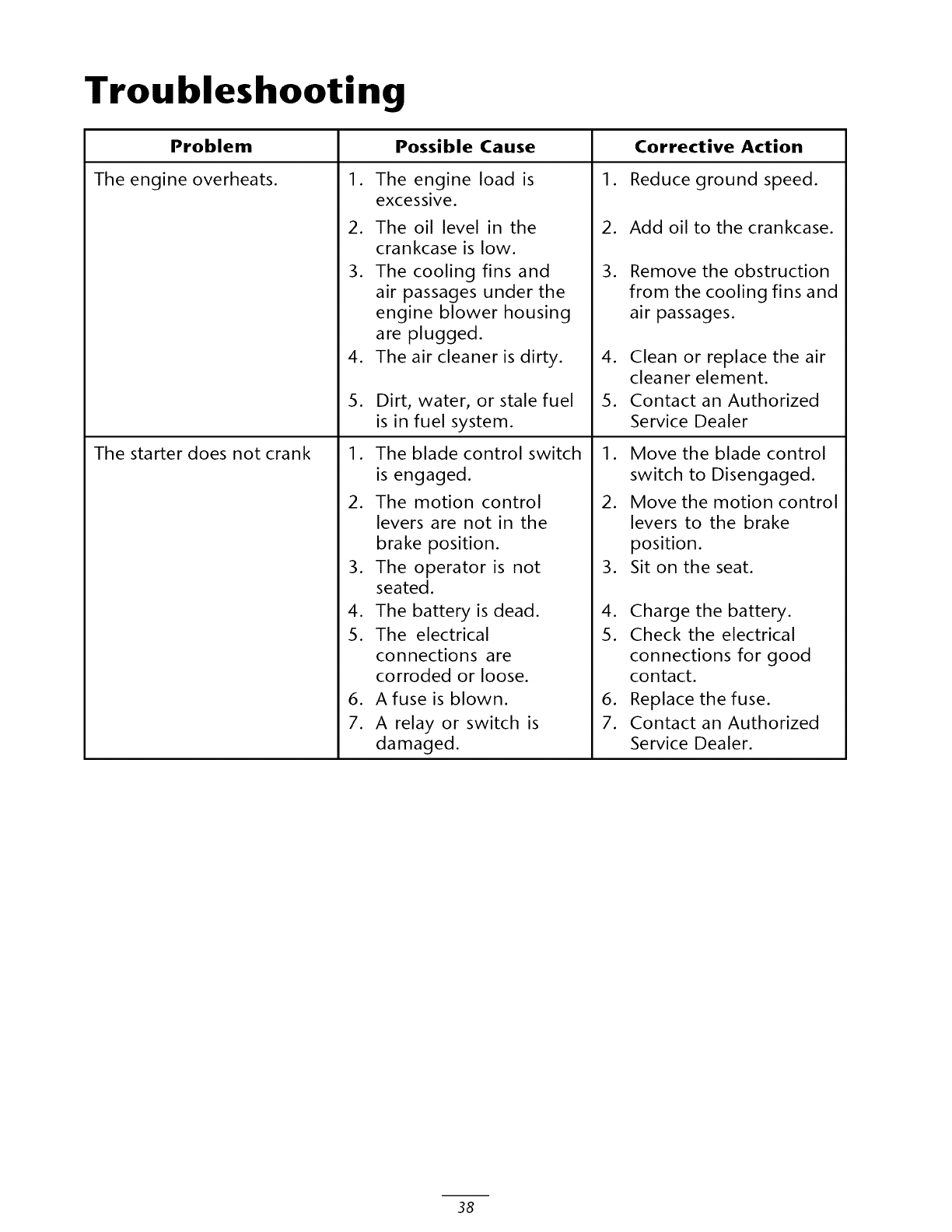 1. Contact any Toro Authorized or Master Service Dealer