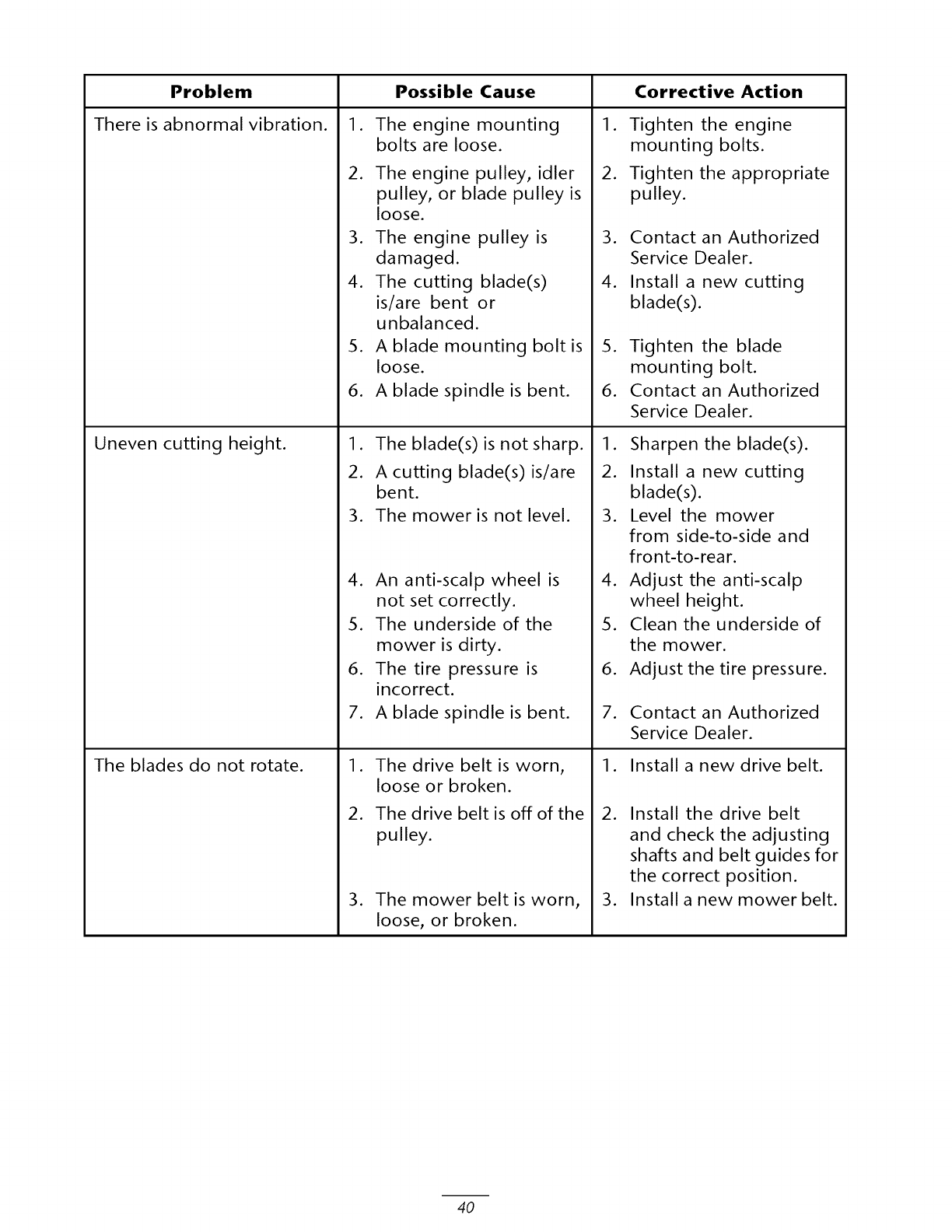 Authorized Toro Service Dealer using Toro approved replacement