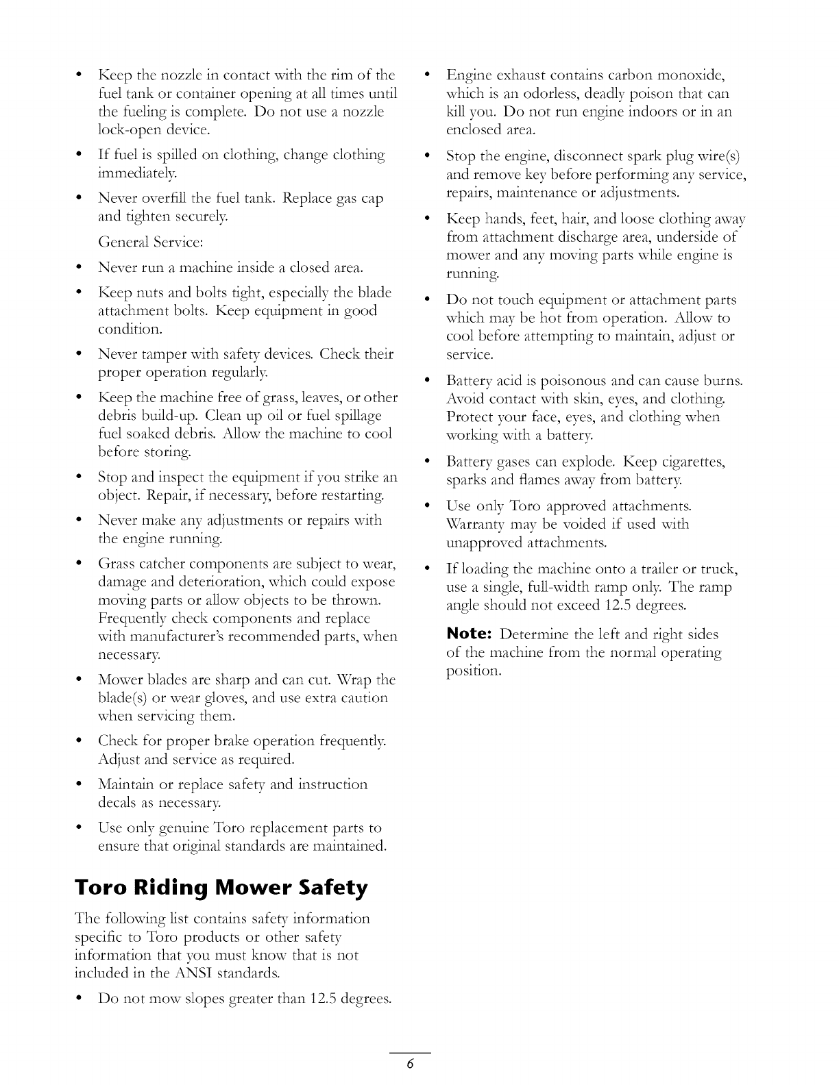 Toro Riding Mower Safety ................... 6