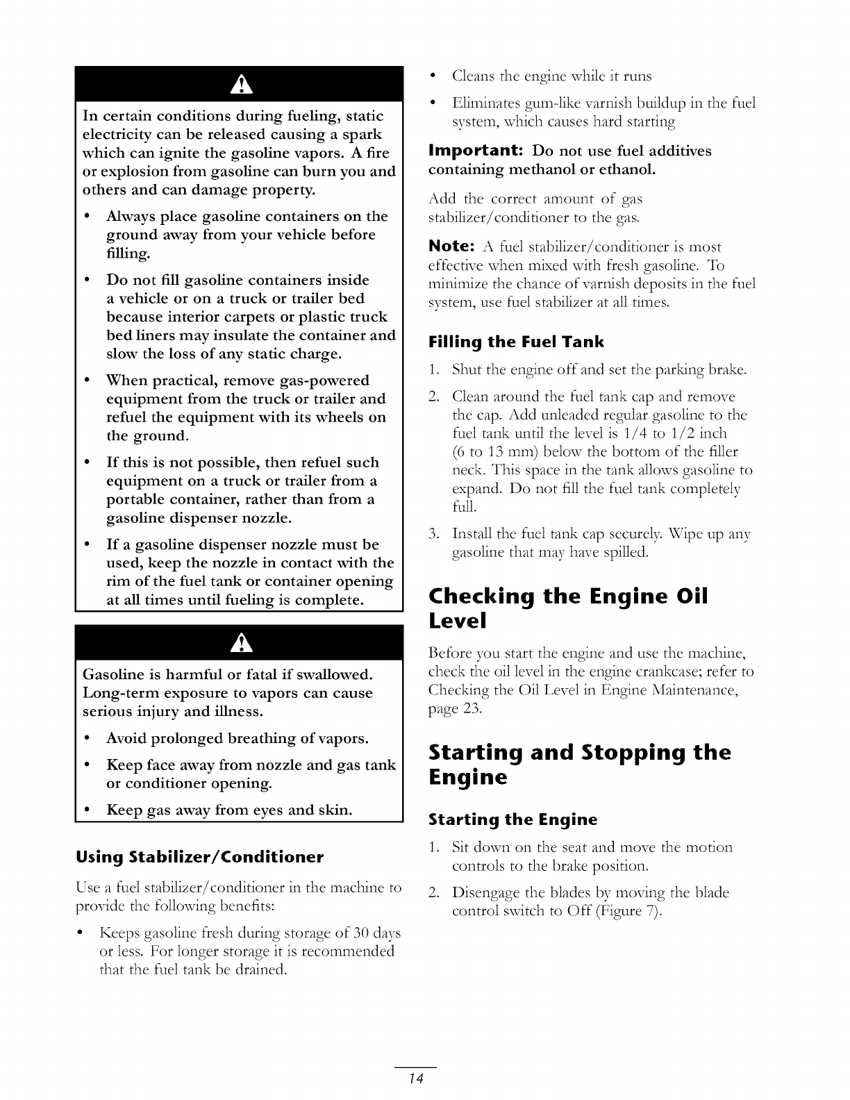 Chec_ng the Engine Oil Level ........... 14