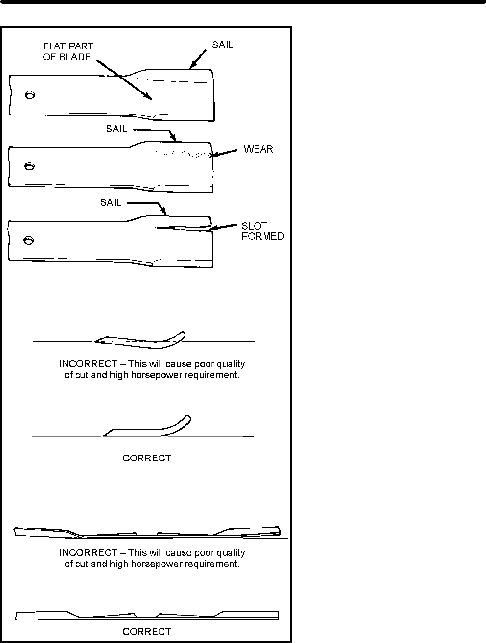 produce a ragged cut and will require an excessive amount of engine horsepower to rotate the blade through the
