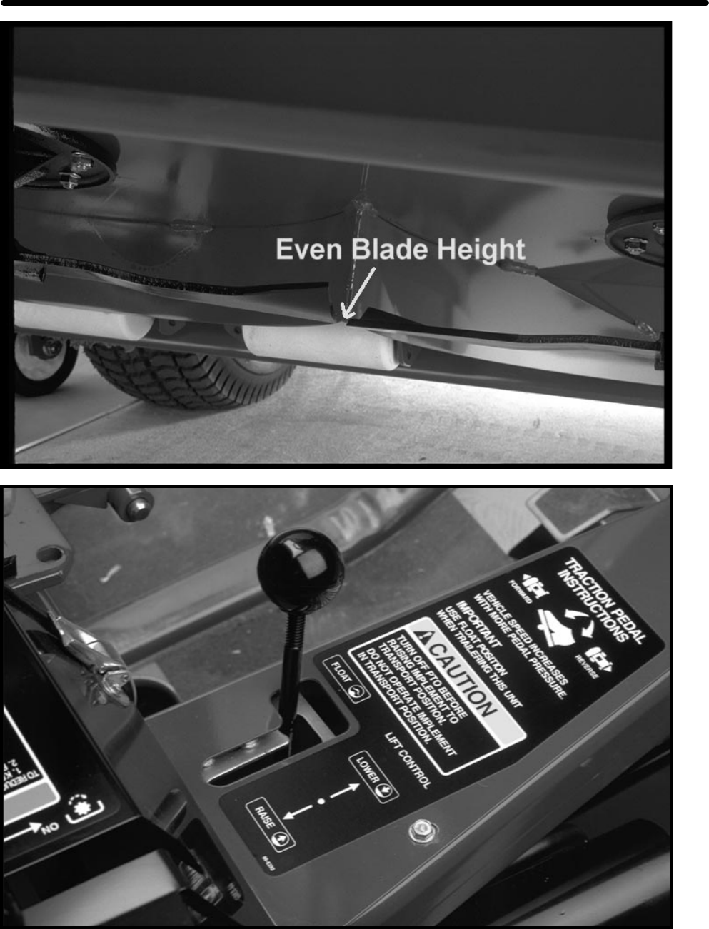 float while the unit is mowing. If the lever is not in the float position, the cutting unit may not follow the contour of