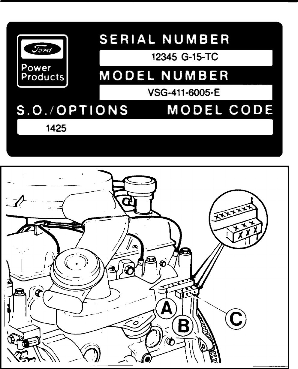 The model number and displacement. ( i.e. 411 = 4 cyl 1.1 liter)