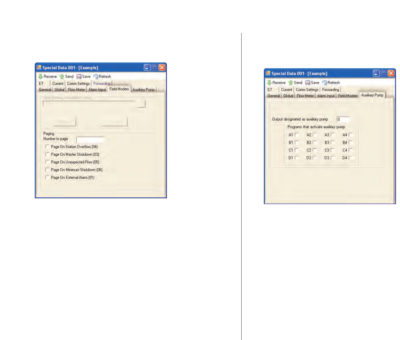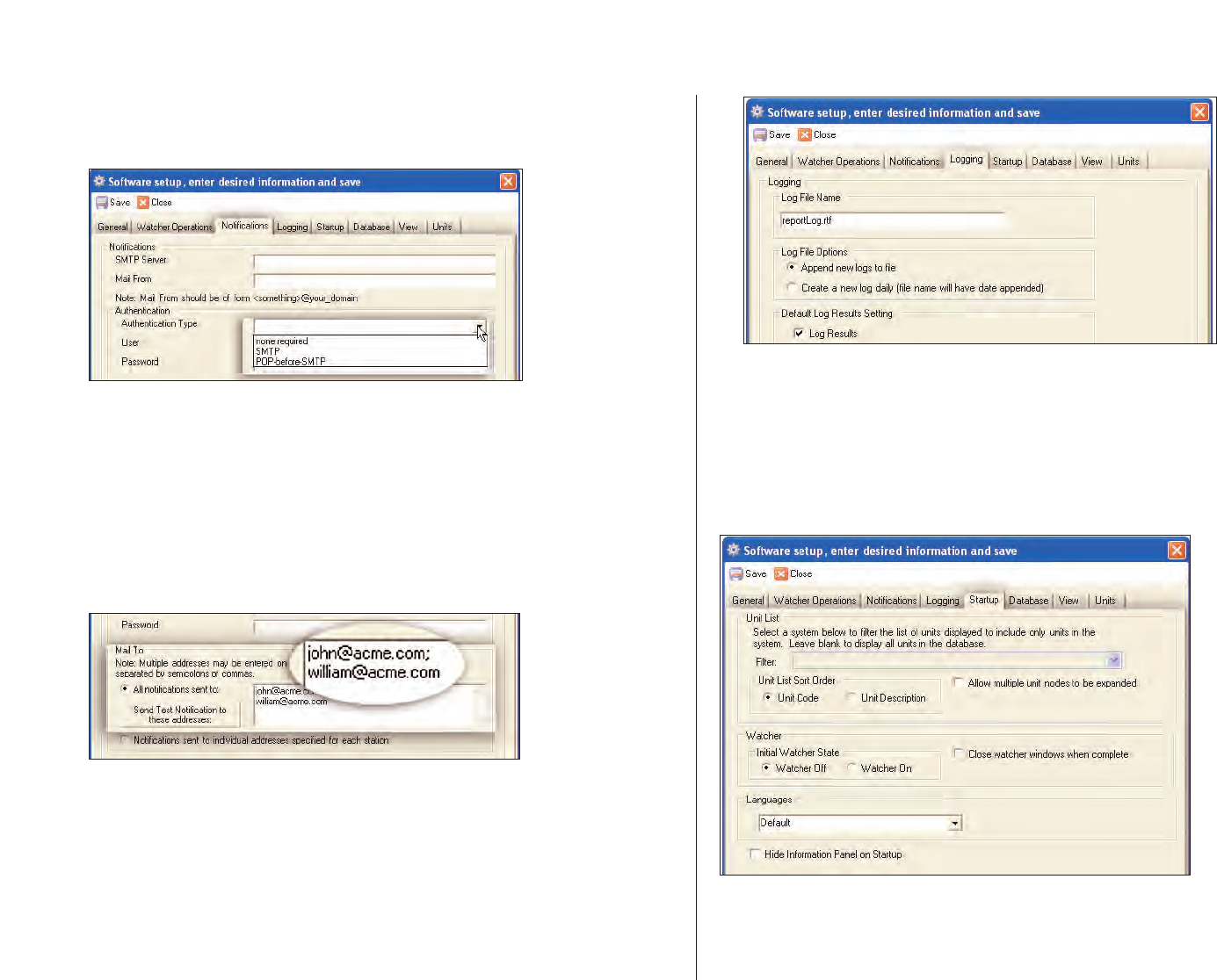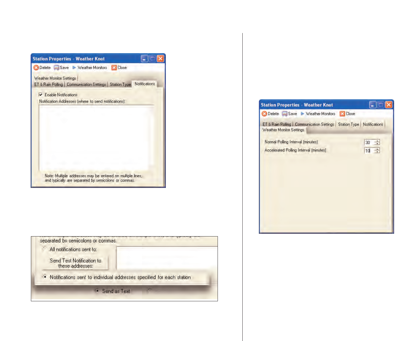 for each station, provided on the Notifications tab of the Setup window,