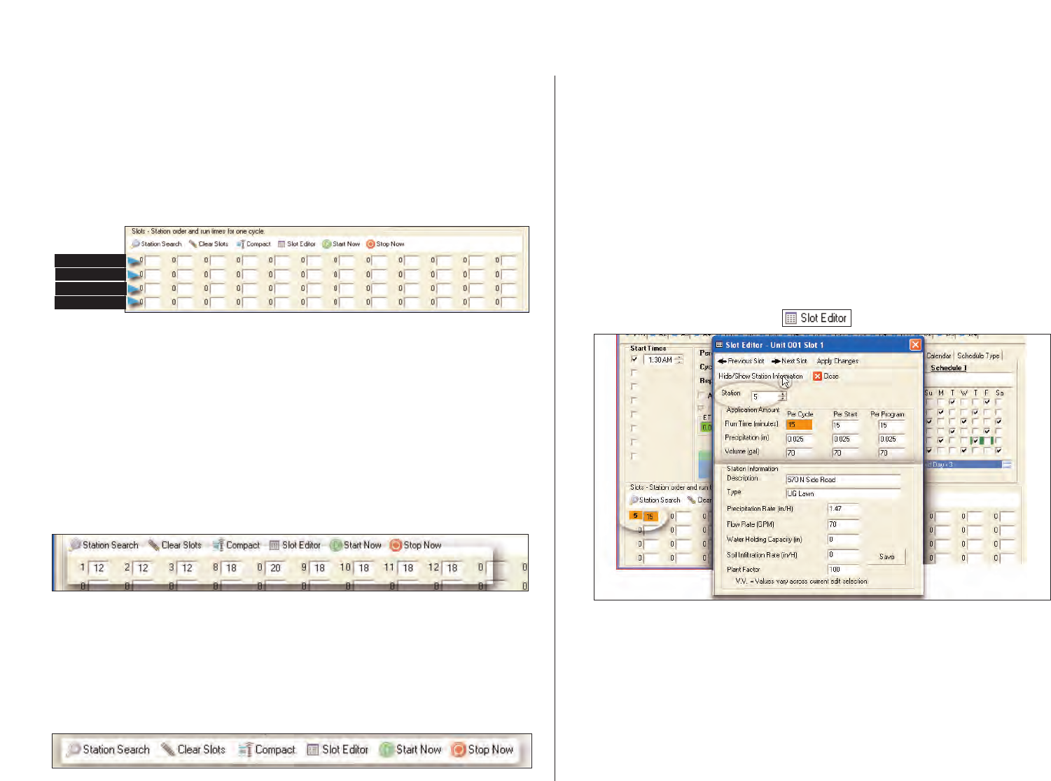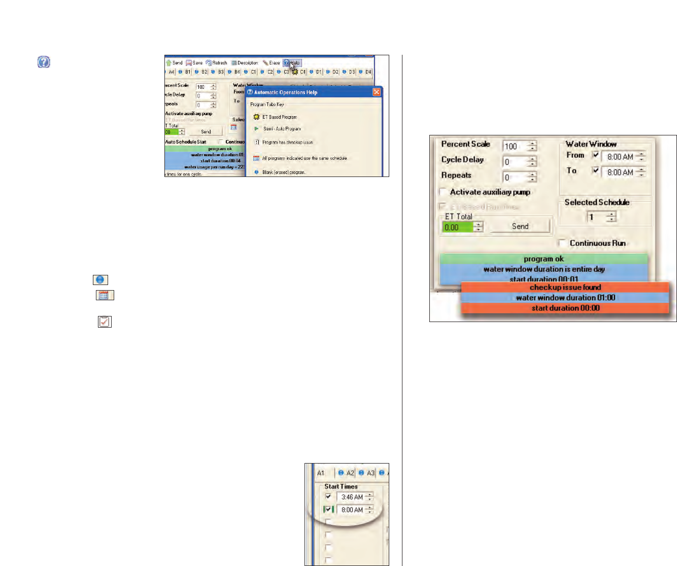 information to calculate daily ET, rainfall and monitored weather conditions,