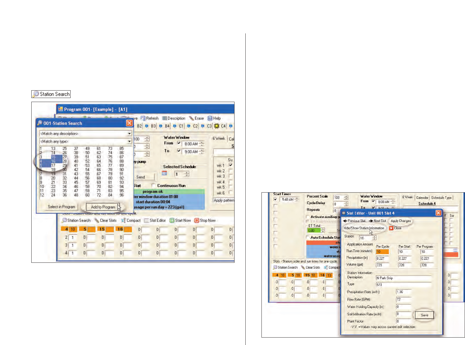 Station Properties window. The window in the following example is
