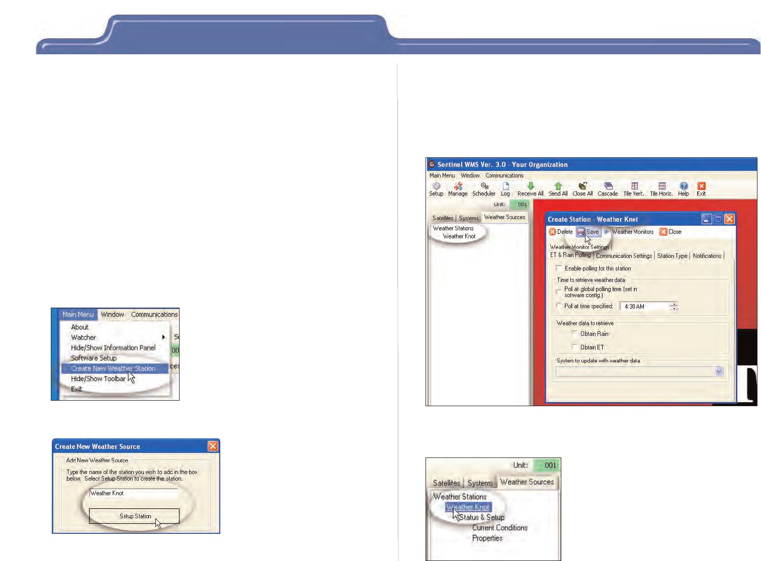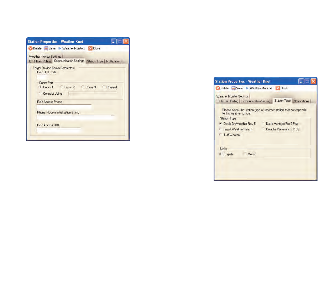1. Select the manufacturer and model of Weather Station instrument.