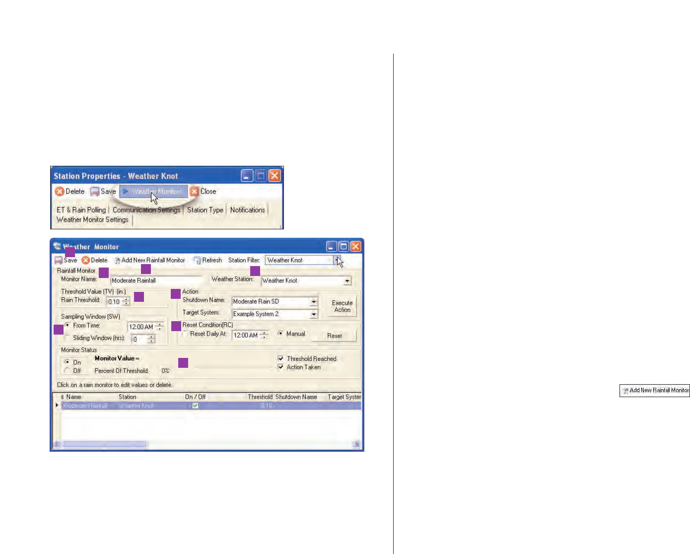 9. To create a new Rainfall Monitor, choose the toolbar