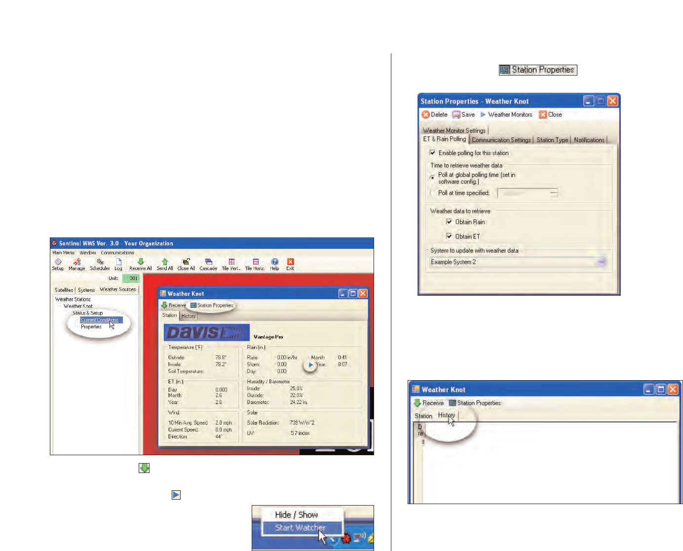 in the Sentinel WMS program software, weather monitoring and reporting