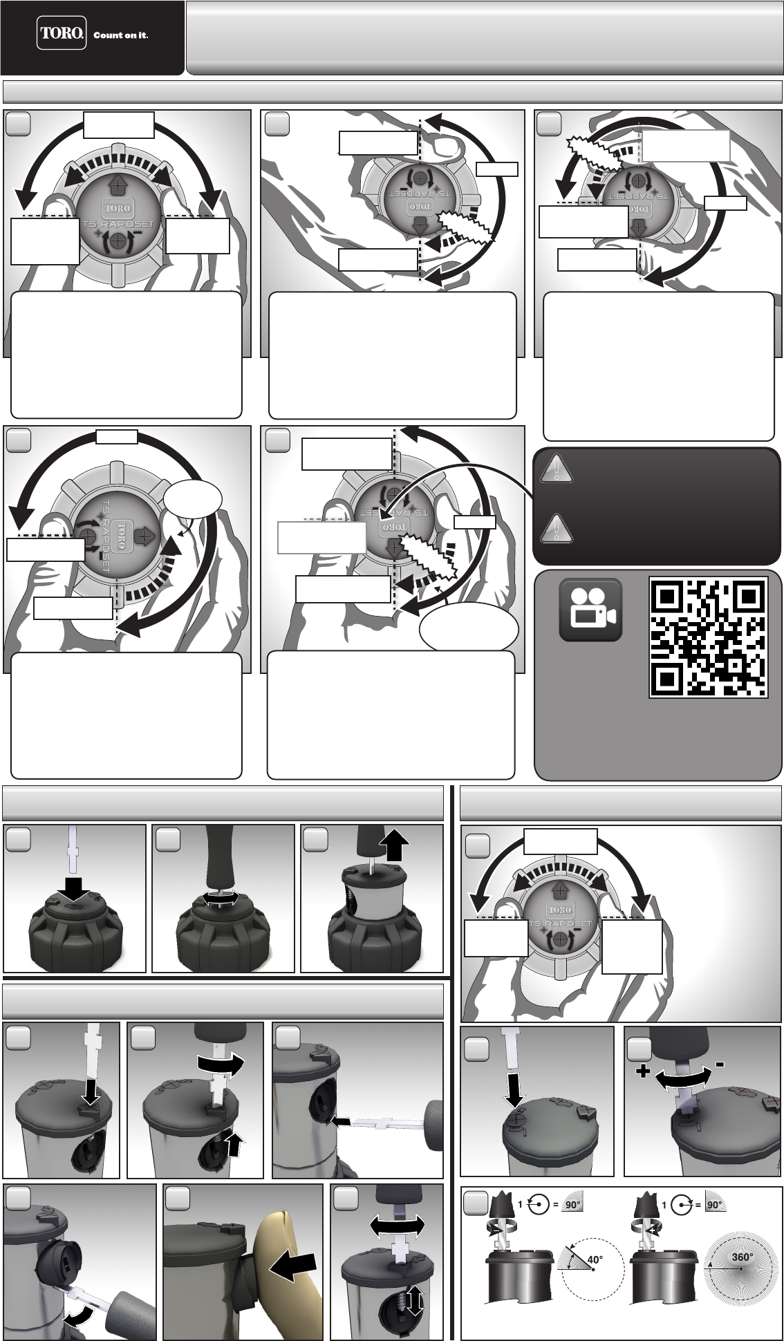 To adjust spray arc, without tools, using RapidSet™: (SPA) Para ajustar el arco de riego usando RapidSet™:
