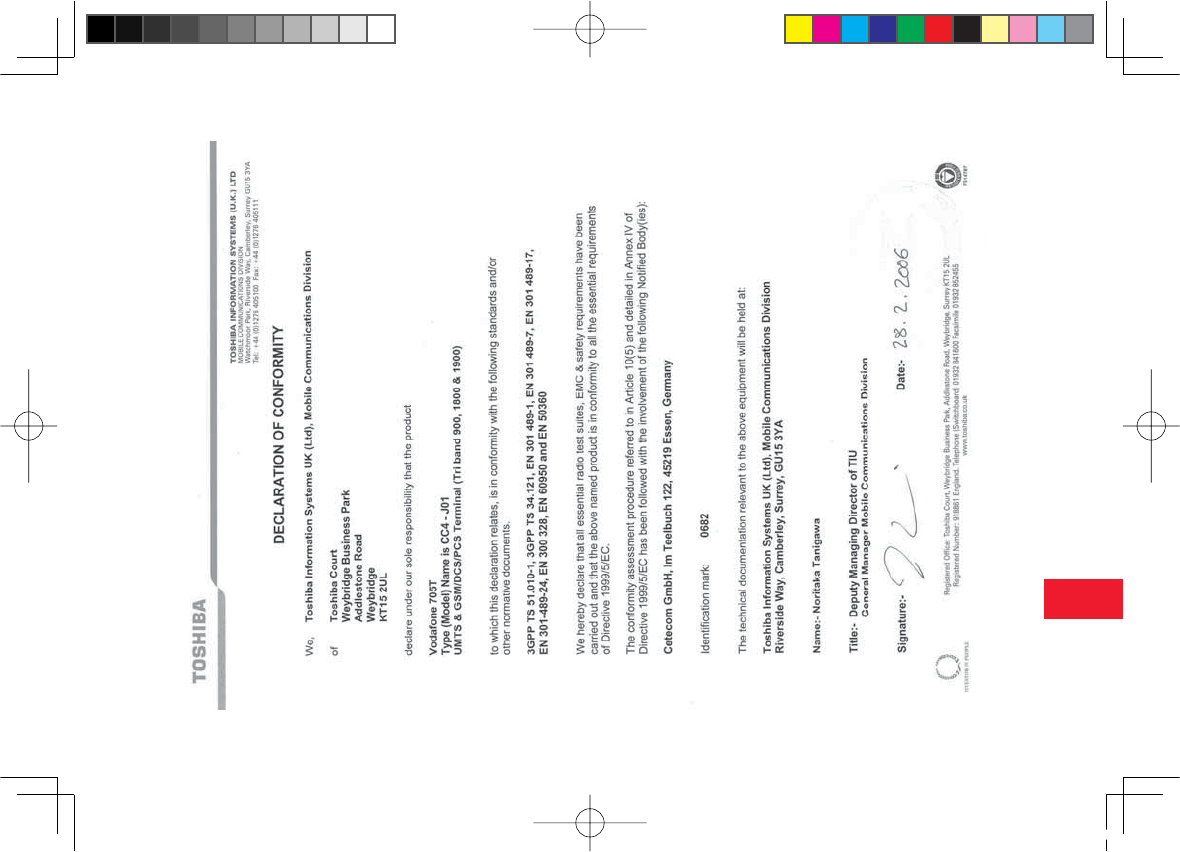 Toshiba Information Systems (UK) Ltd, Mobile Communications Division GSM 900/1800/1900/UMTS Mobile Phone with Bluetooth