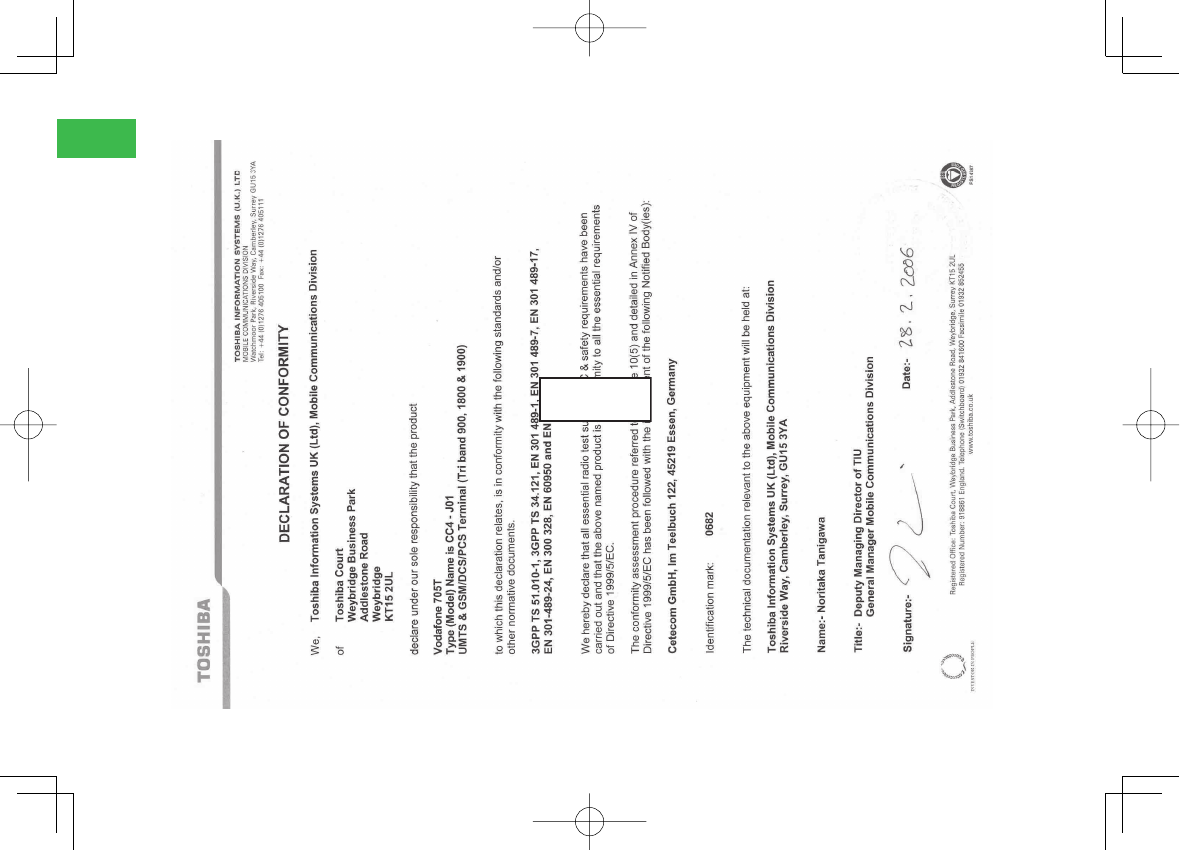 Toshiba Information Systems (UK) Ltd, Mobile Communications Division GSM 900/1800/1900/UMTS Mobile phone with Bluetooth 08