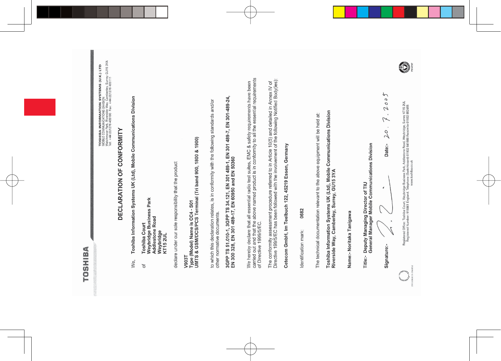 Toshiba Information Systems (UK) Ltd, Mobile Communications Division GSM 900/1800/1900/UMTS Mobile phone with Bluetooth UG Draft Jpn CC4 S01 20050802 1