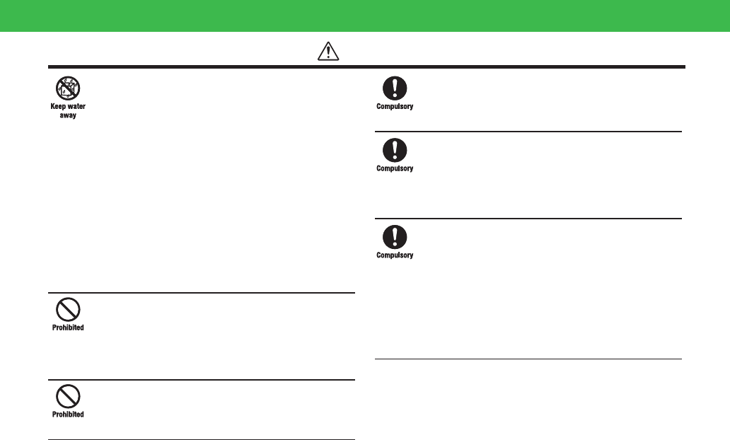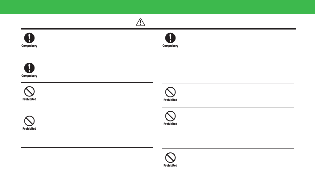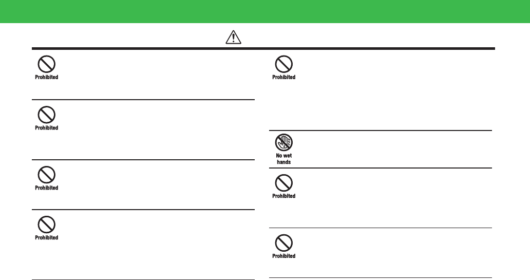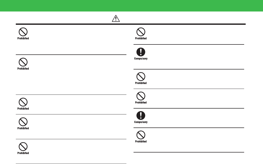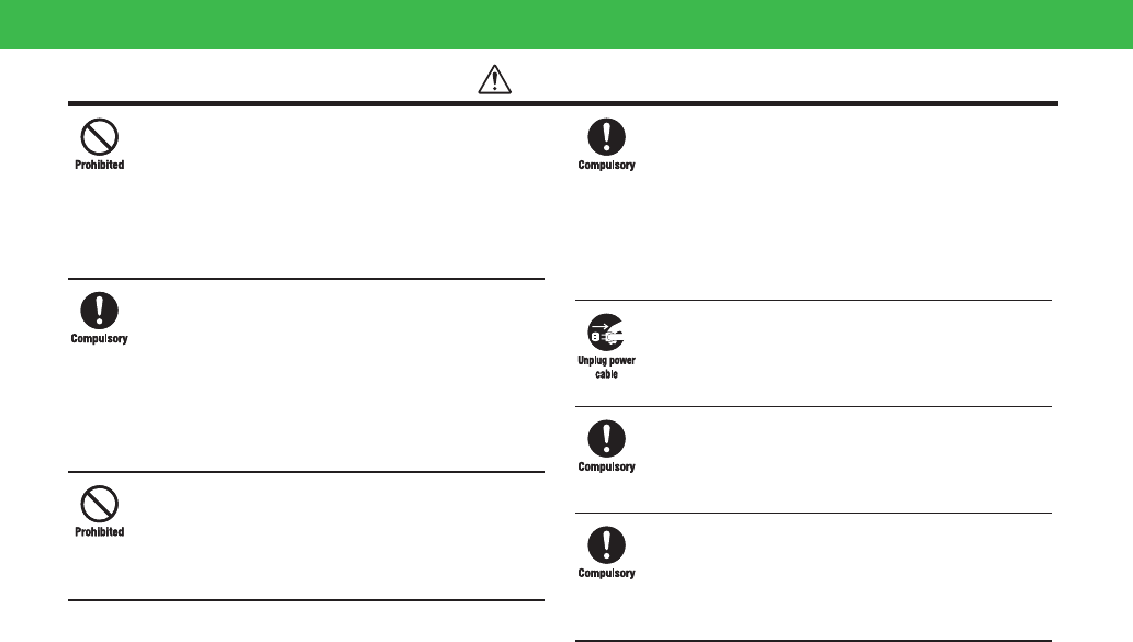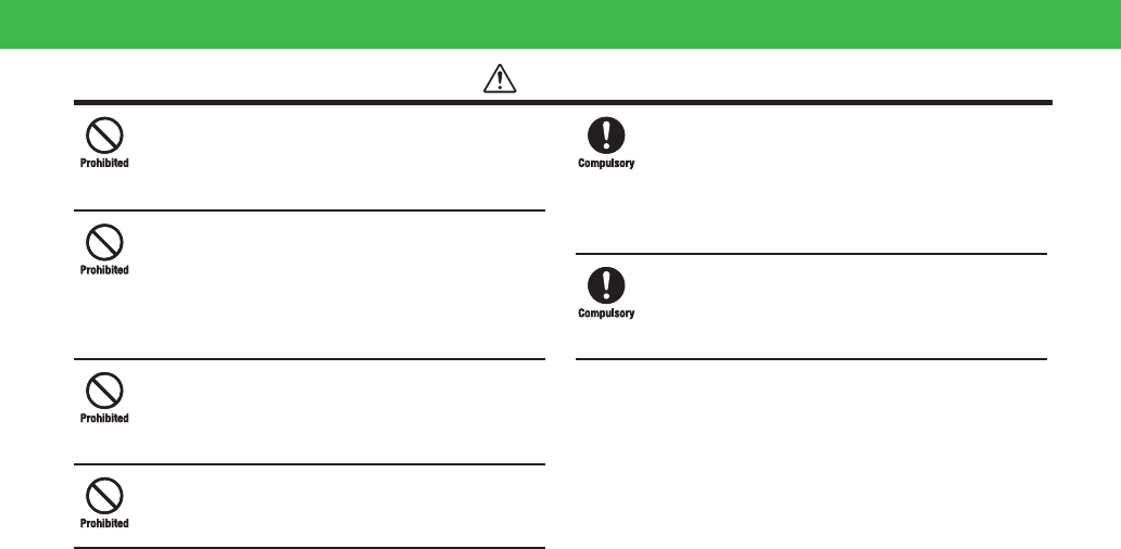 Doing so may cause overheating, rupturing, fi re or malfunction.