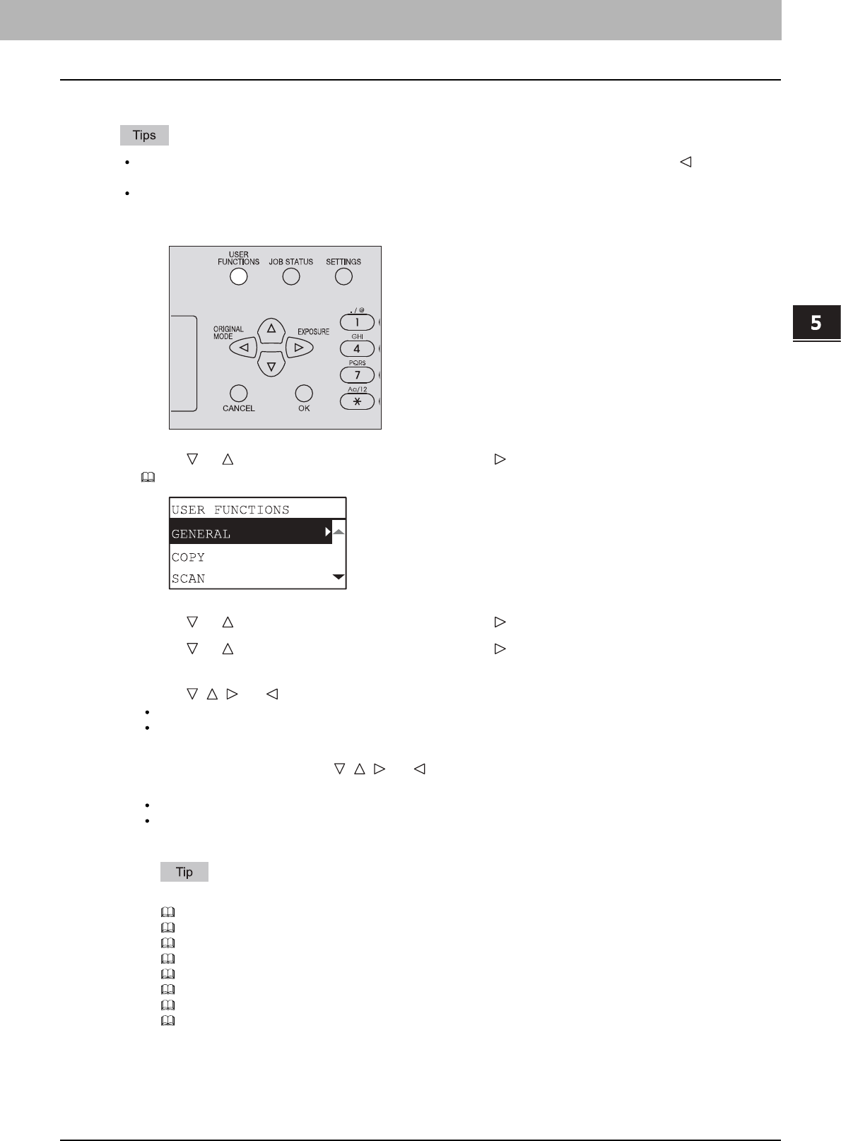 Before you start operating the “USER FUNCTIONS” menu, learn the general procedure below.