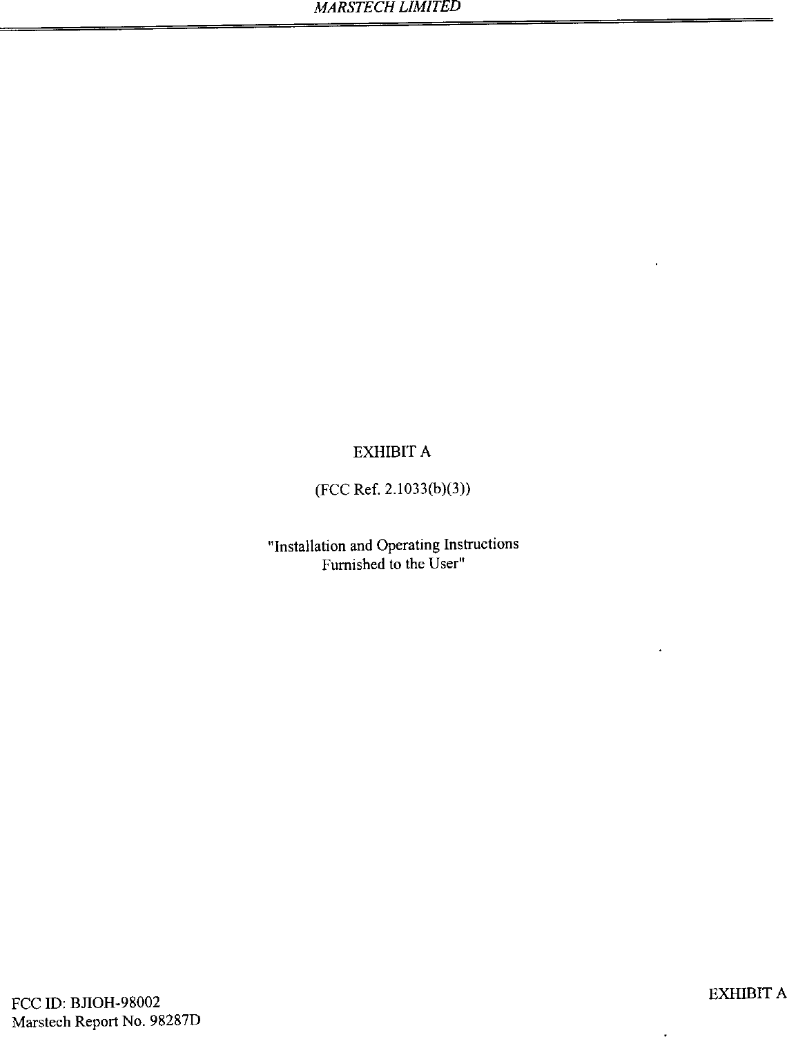 OH 98002 User Manual