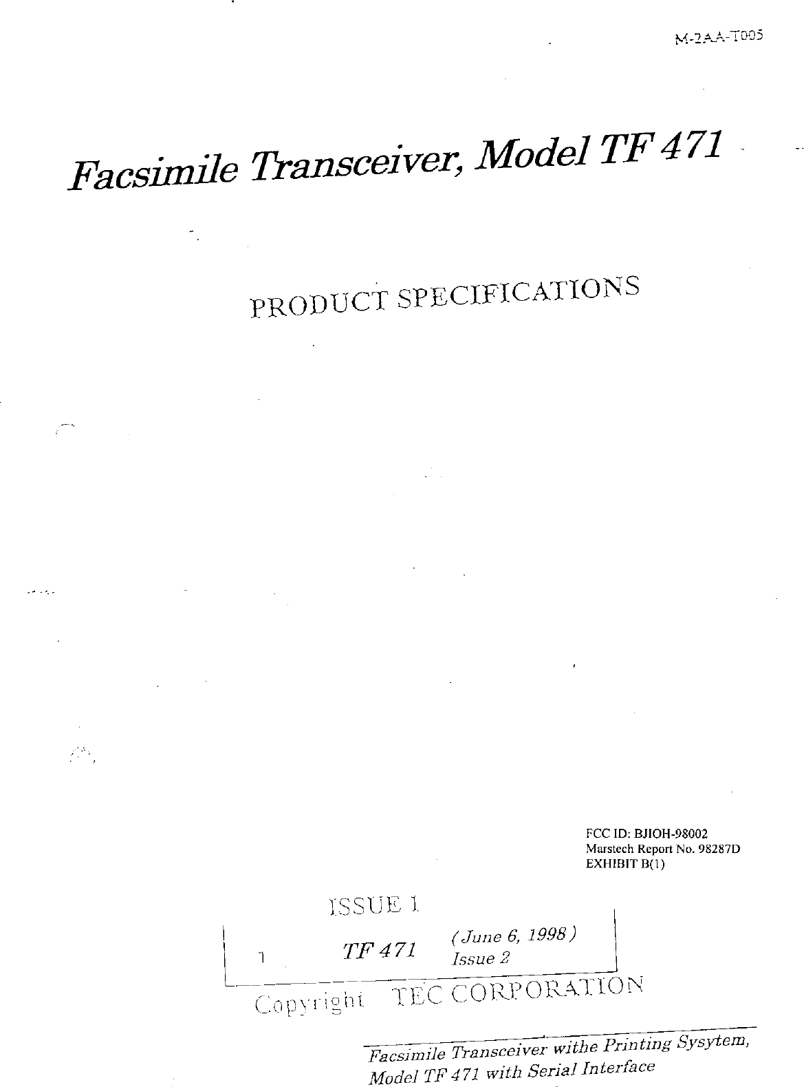 Toshiba TEC OH-98002 User Manual 8