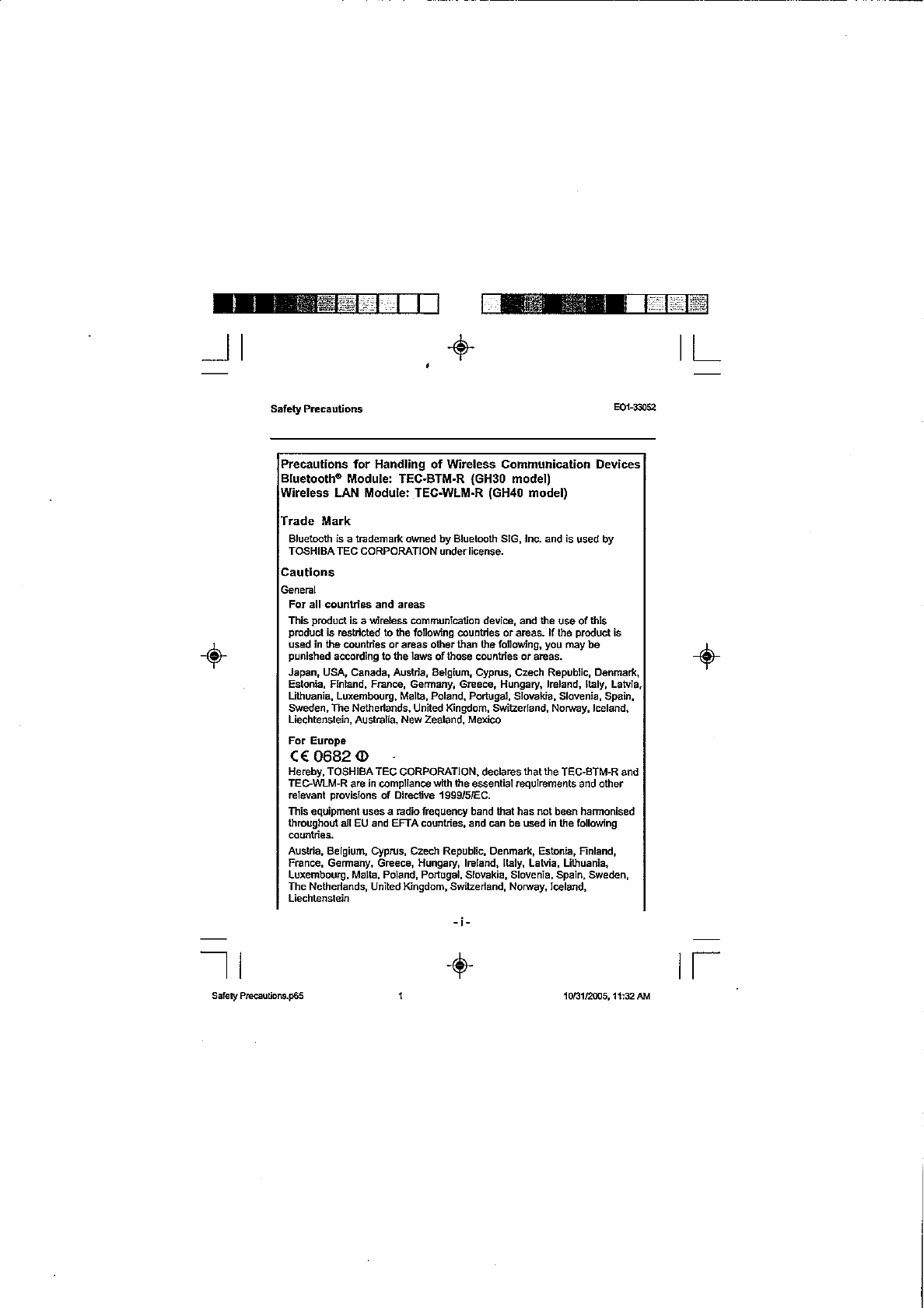 Toshiba TEC OH0005 WLAN Transmitter Module User Manual