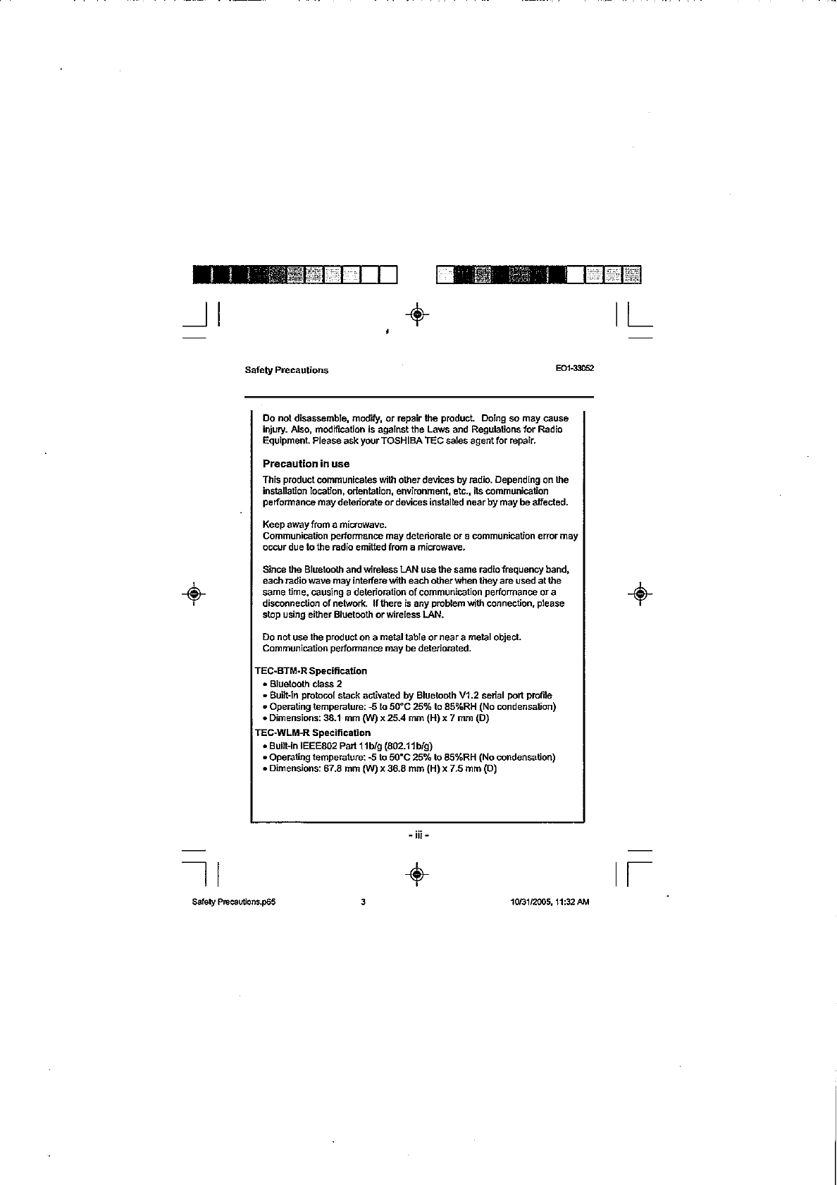 Toshiba TEC Corporation WLAN Transmitter Module Users Manual