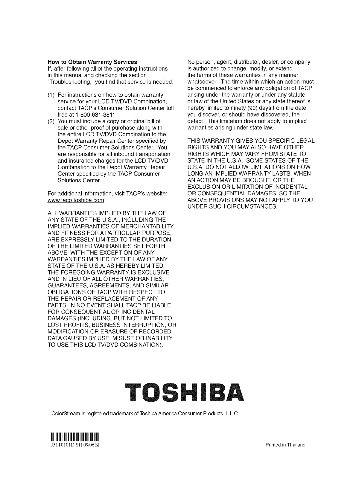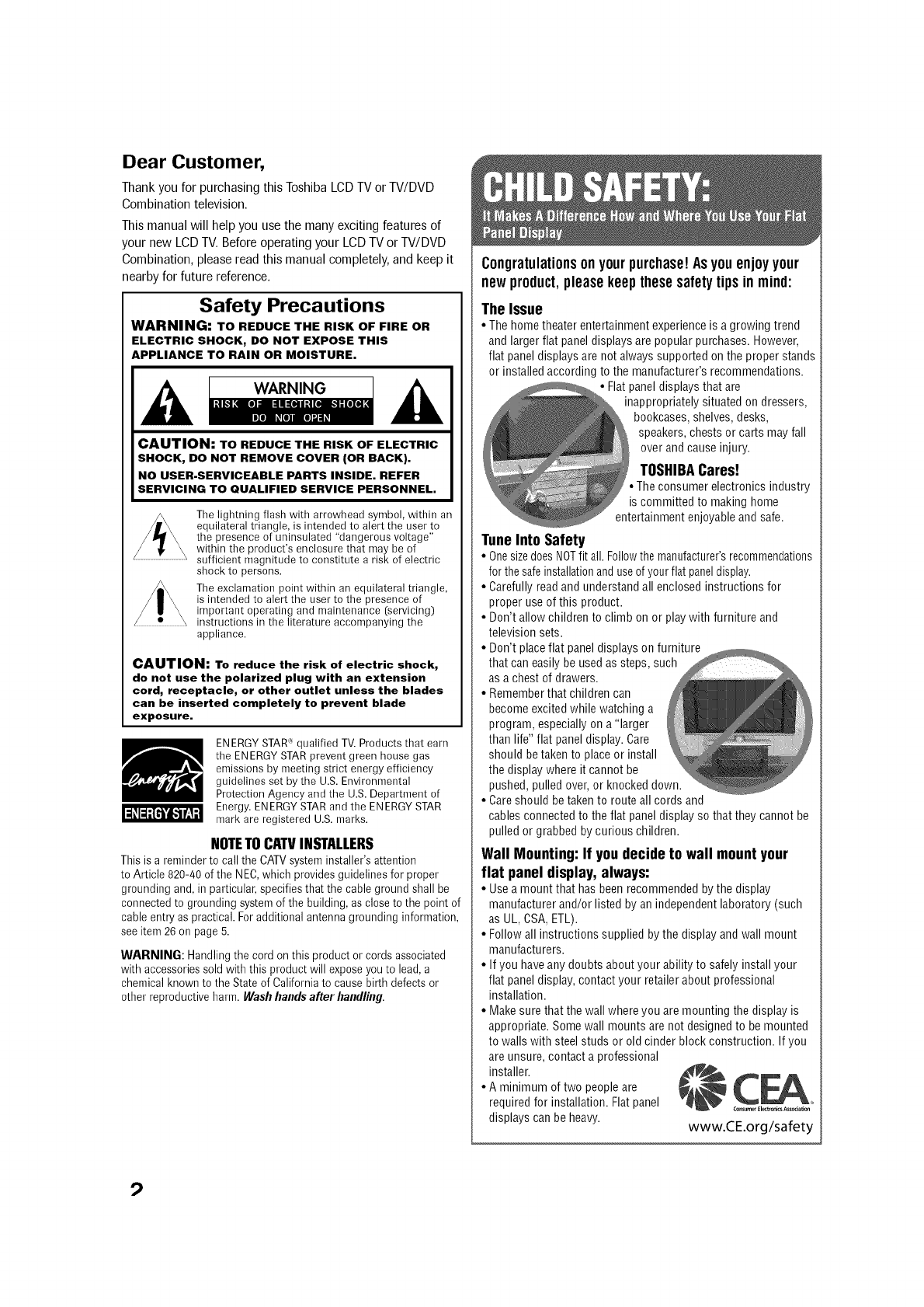 Thank you for purchasing this Toshiba LCD TV or TV/DVD