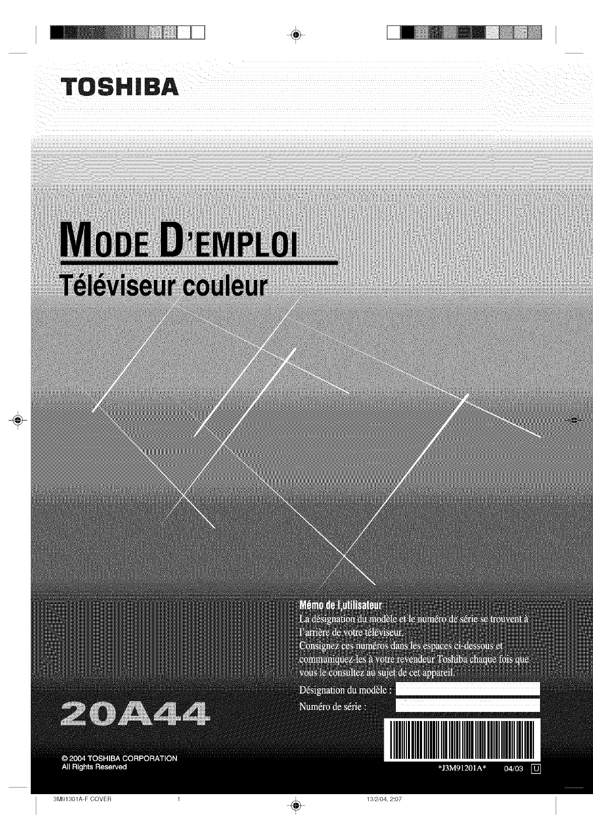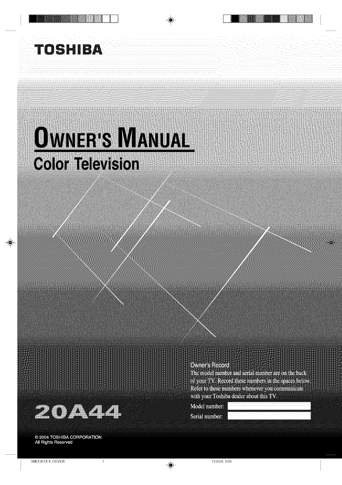 User Manual: Toshiba 20A44 20A44 TOSHIBA COLOR TV - Manuals and Guides View the owners manual for your TOSHIBA COLOR TV #20A44. Home:Electronics Parts:Toshiba Parts:Toshiba COLOR TV Manual