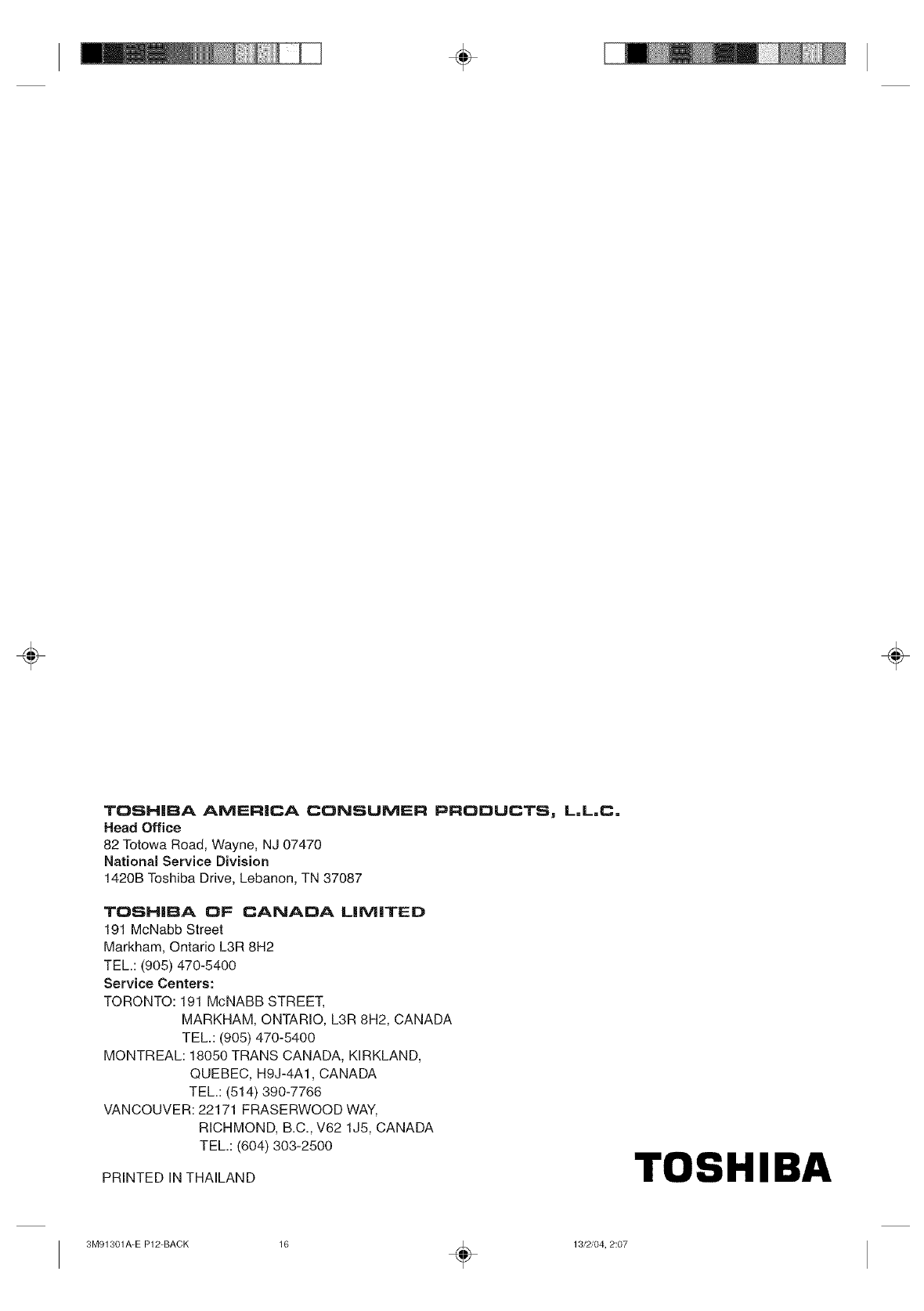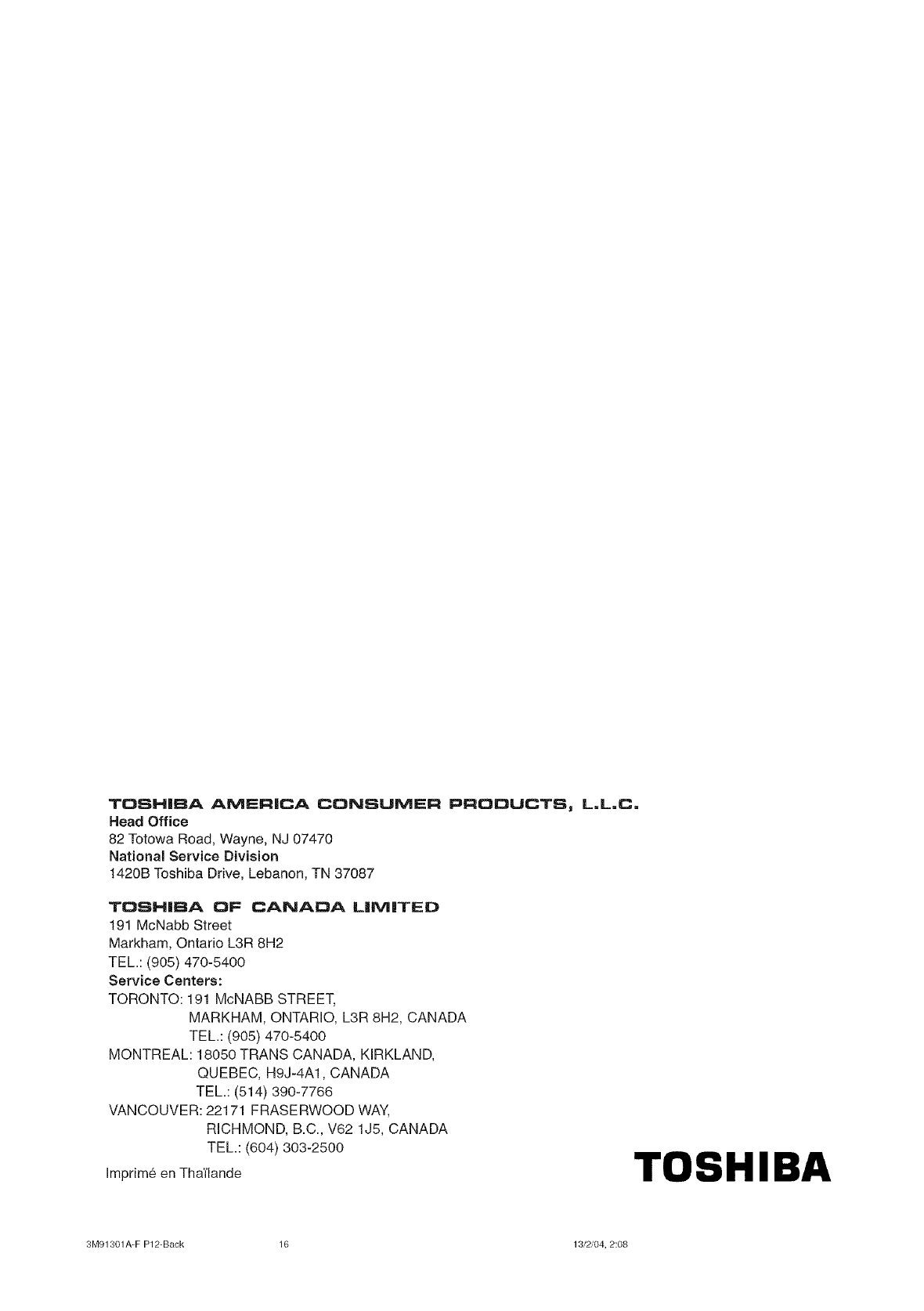 TOSHIBA AMERICA CONSUMER PRODUCTSj L=L=C=