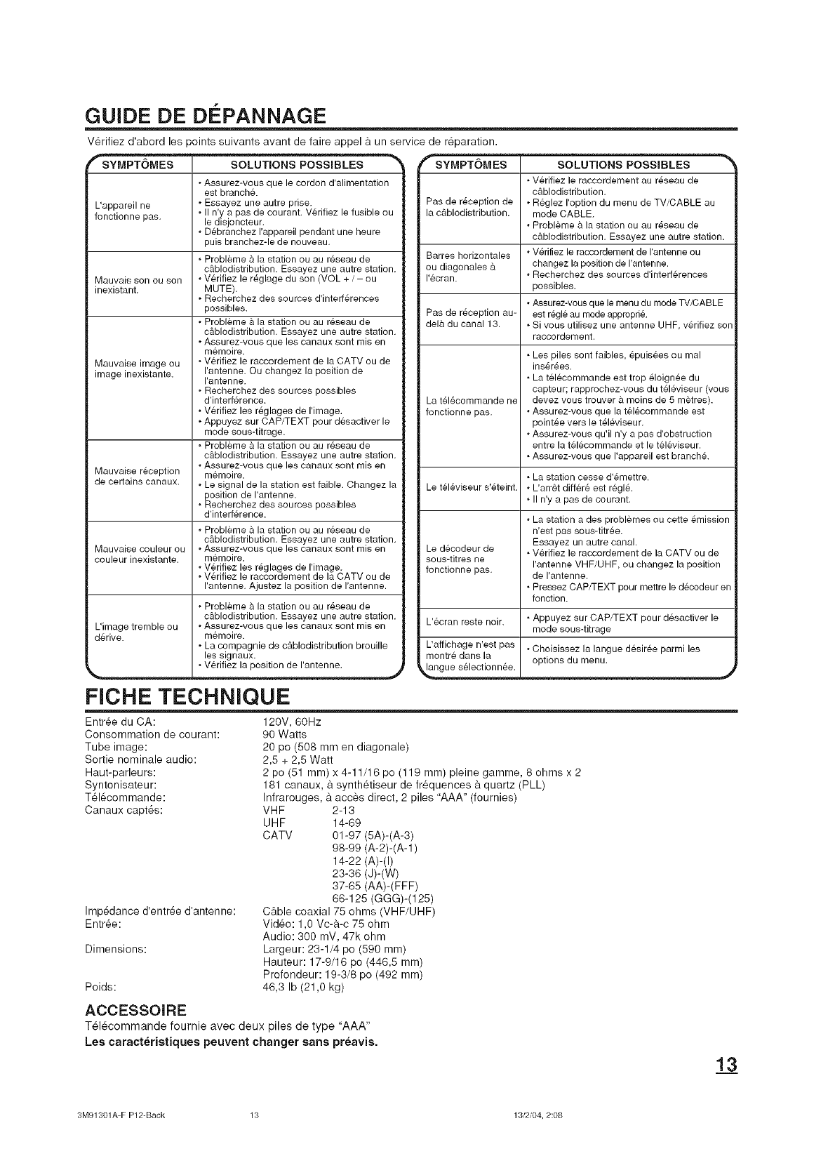 (2) Tousles services sous garantie pour ce t_leviseur doivent