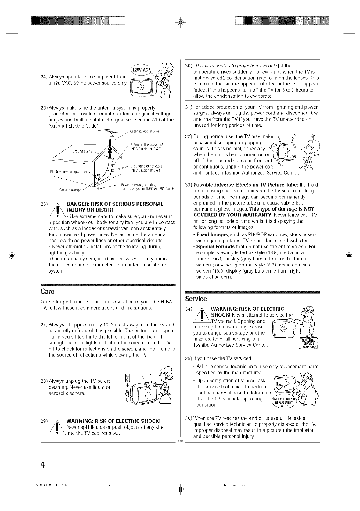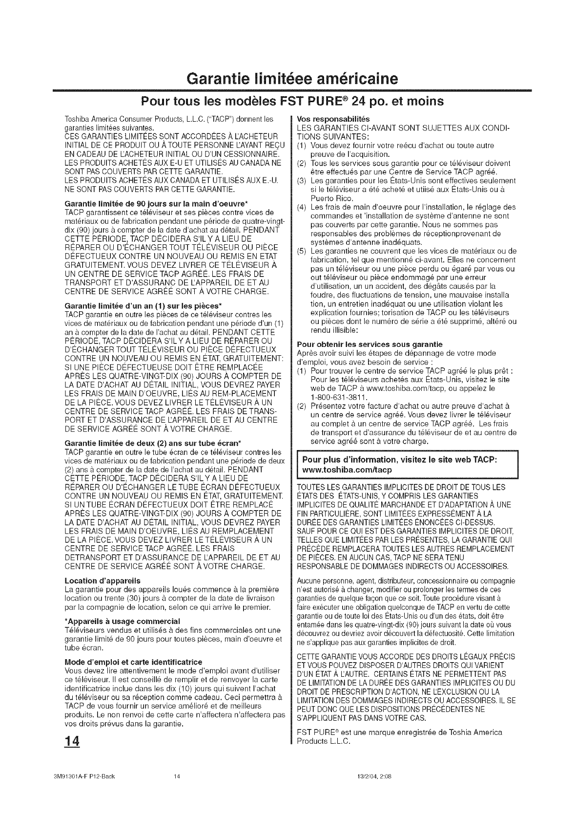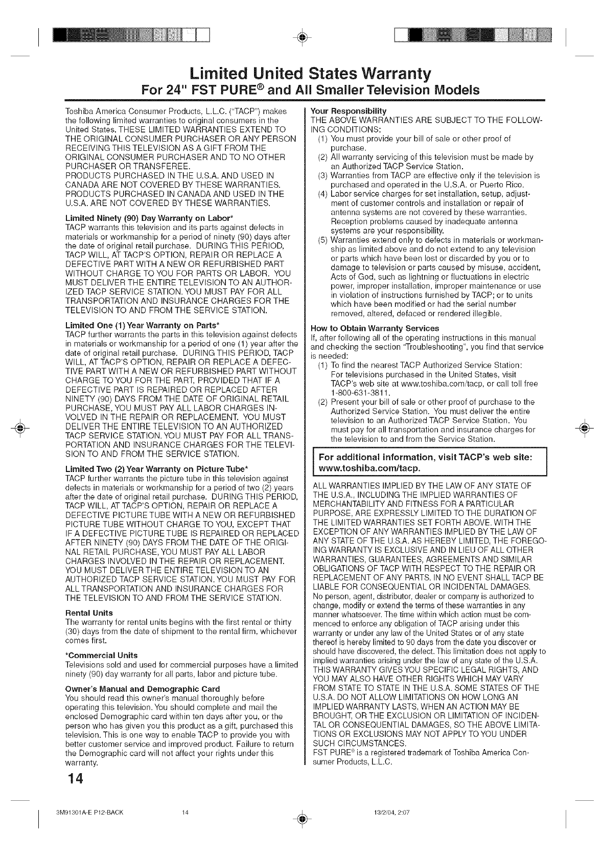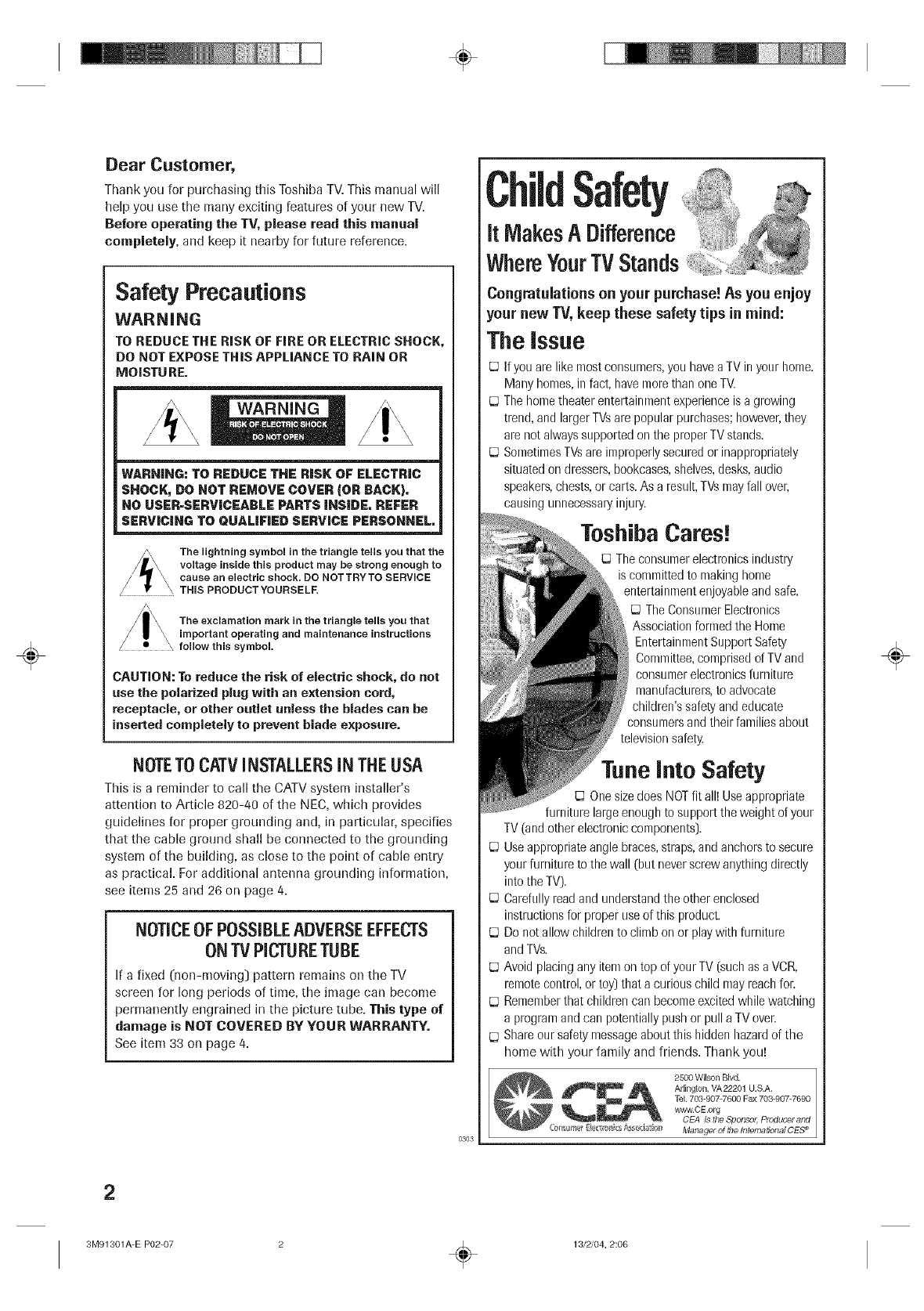 TOSHIBA Direct View/Digital 26 and under TV Manual L0502589 TOSHIBA Direct View/Digital 26 and under TV Owner's Manual, TOSHIBA Direct View/Digital 26 and under TV installation guides