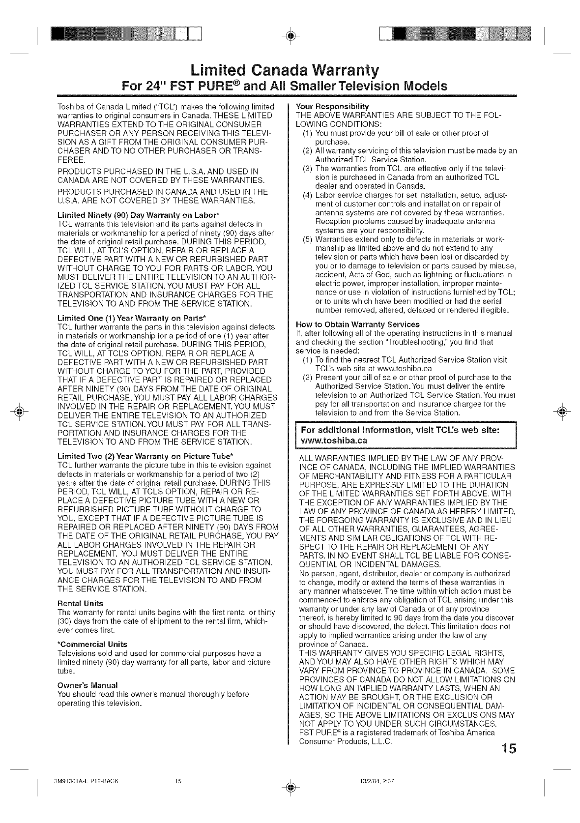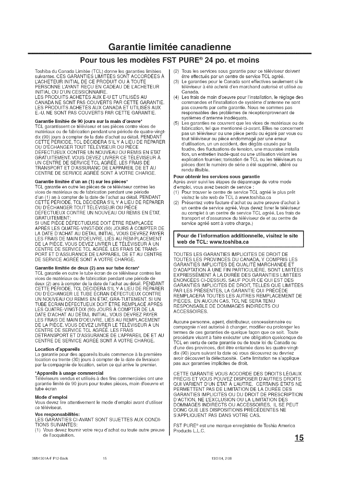 TCL en vertu de cette garantie ou de toute Ioi du Canada ou