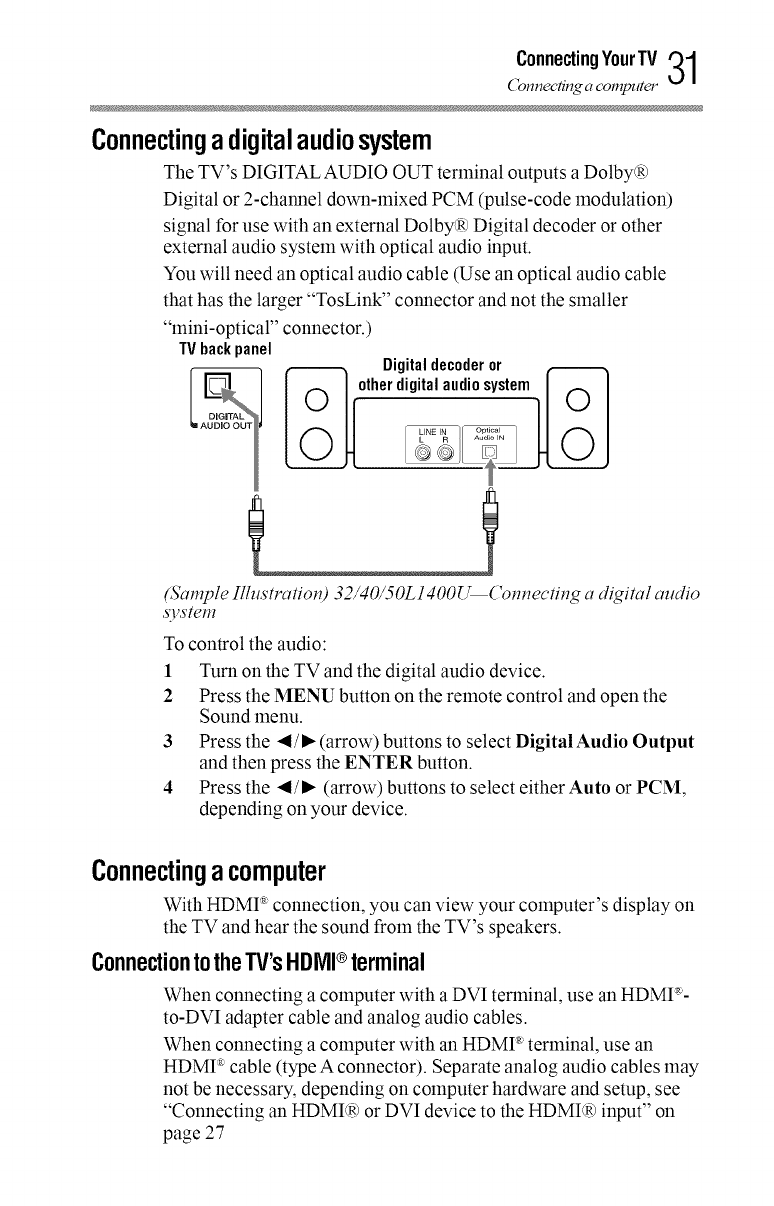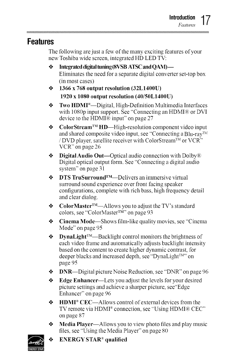 Toshiba 32L1400U User Manual LED TV Manuals And Guides 1402045L