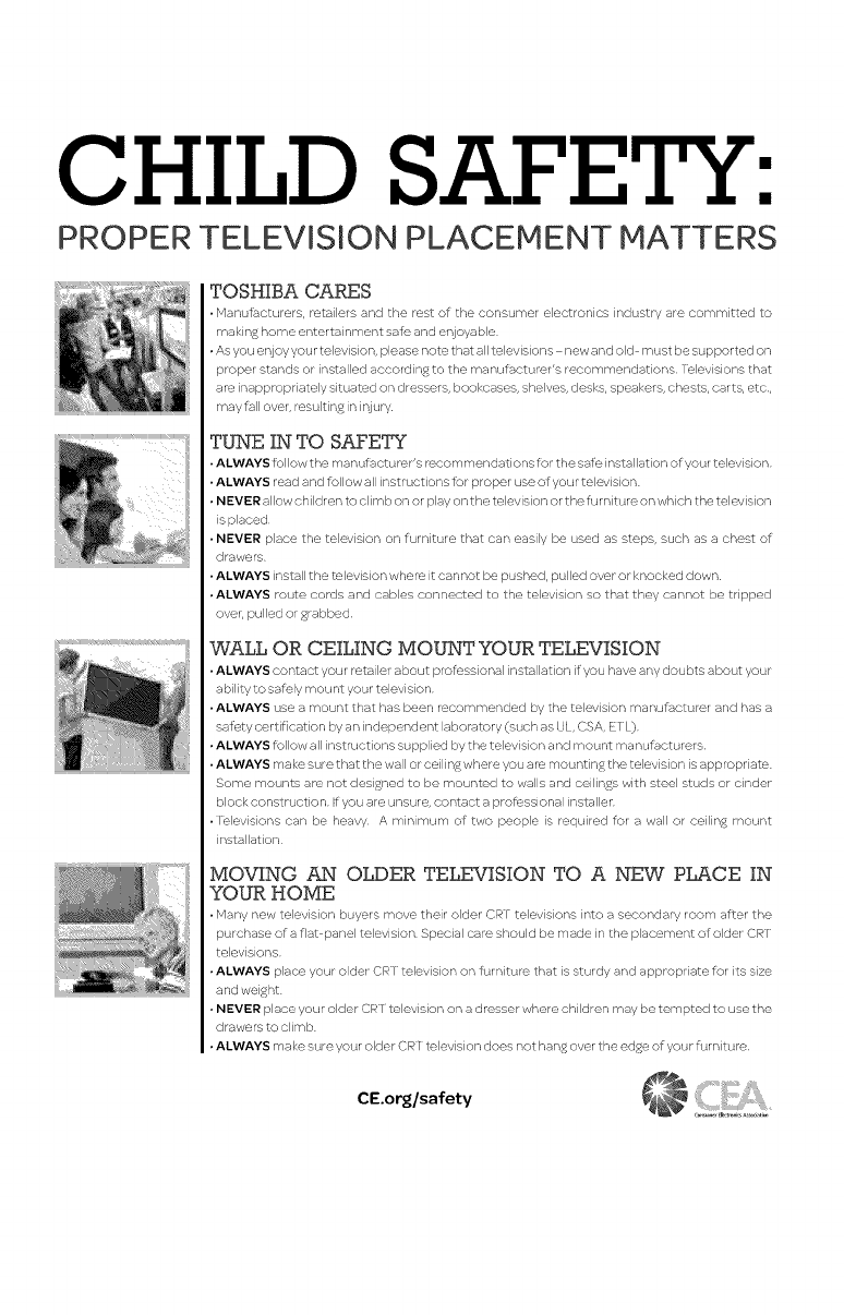 • NEVER allow children to climb on or play on the television or the furniture on which the television
