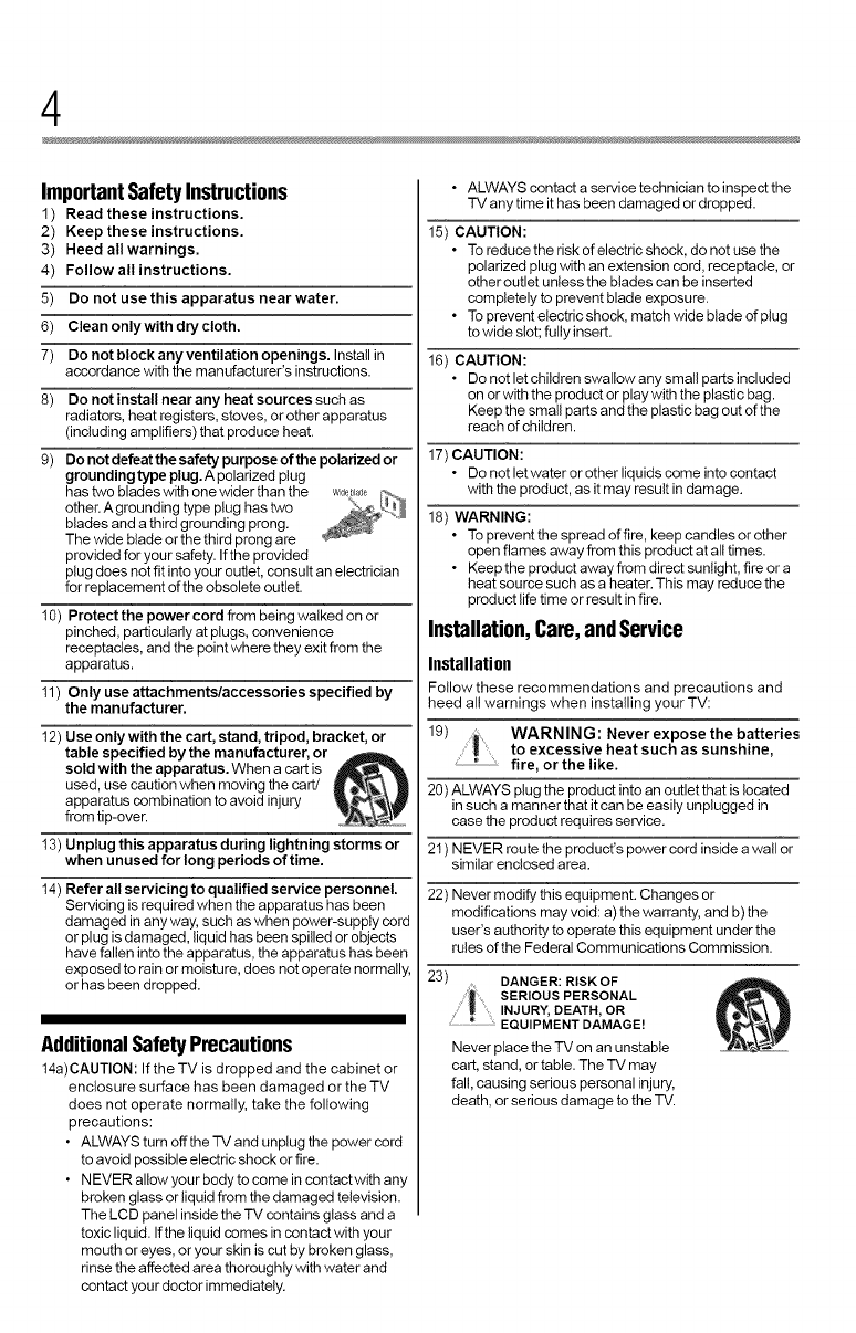 • ALWAYS read and fbllow all instructions fbr proper L:se of your television
