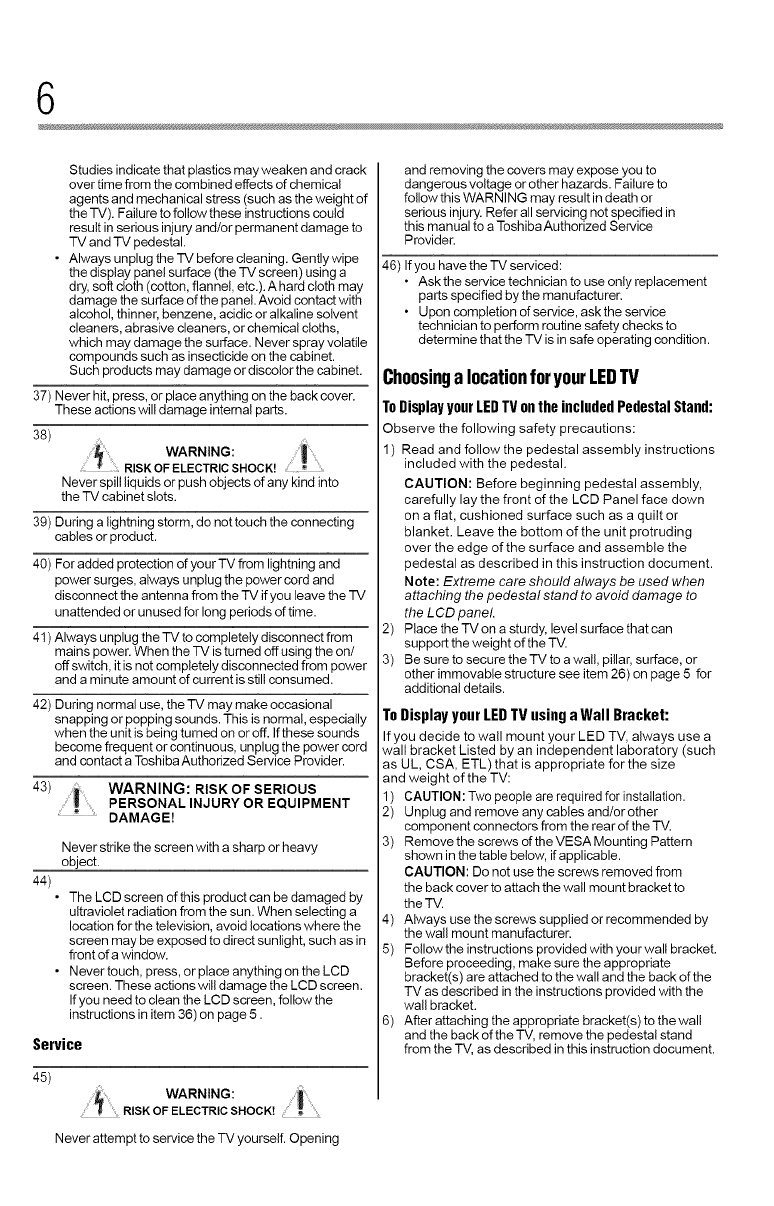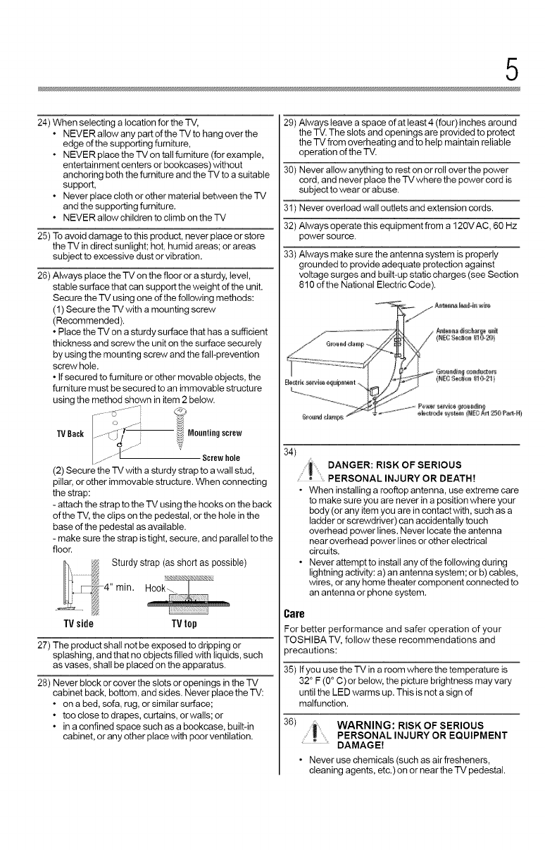 proper stands or installed according to the manuf:/cturer's recommendations televisions that