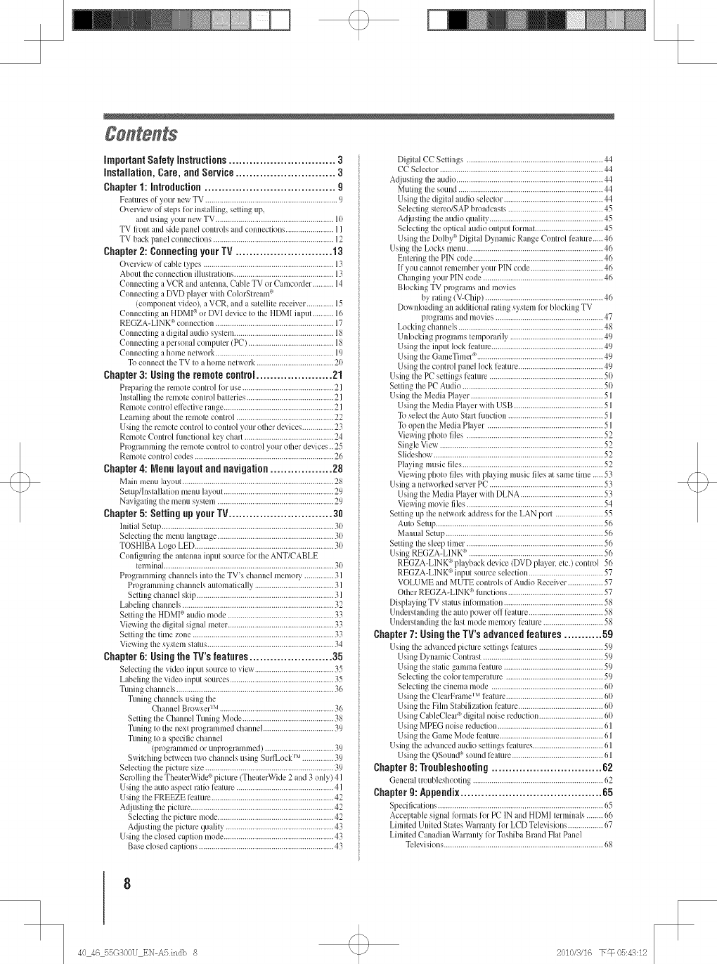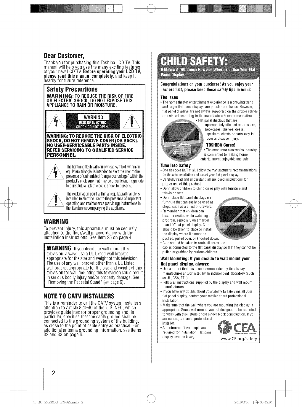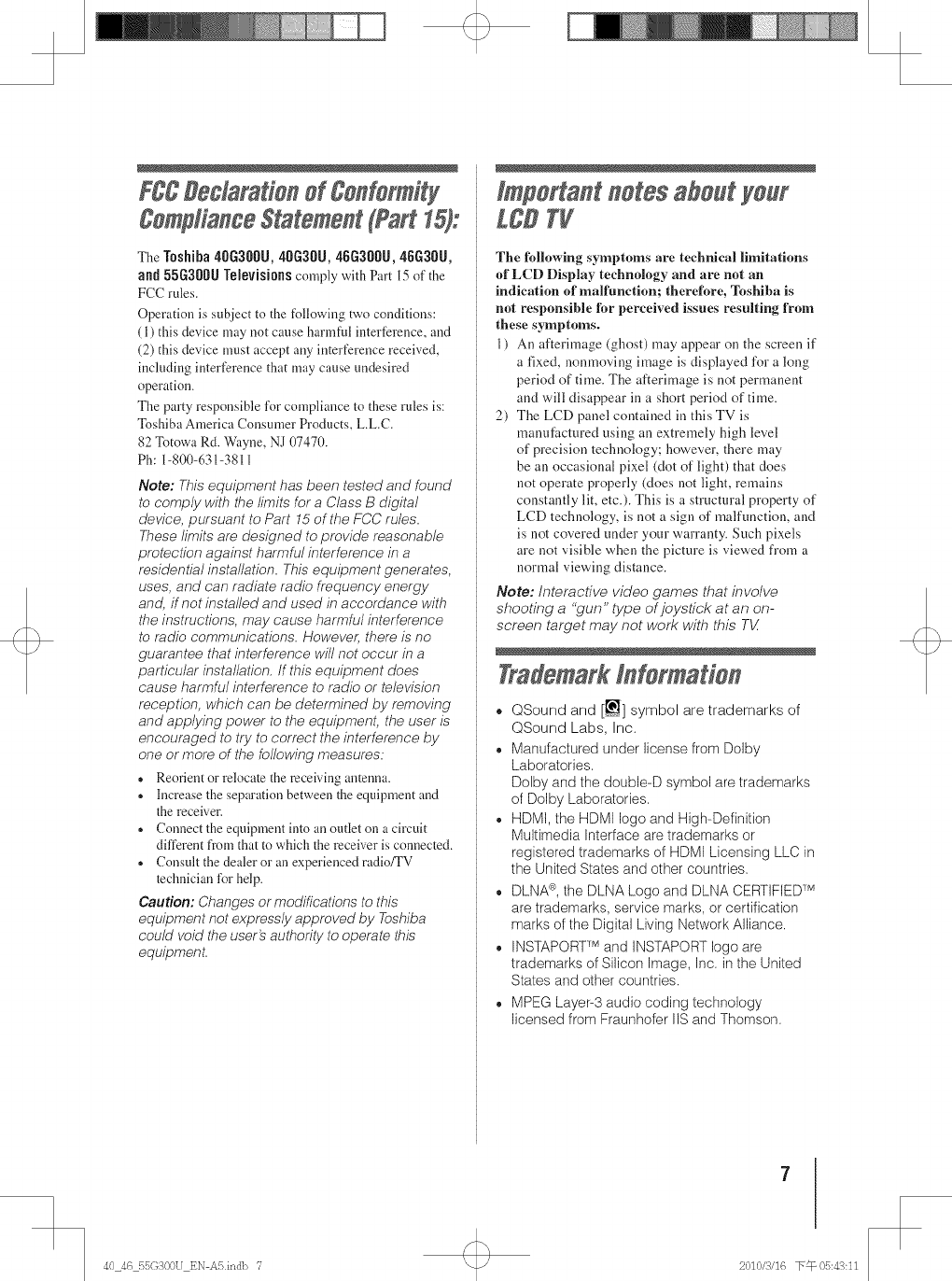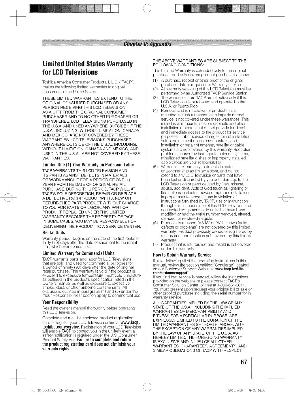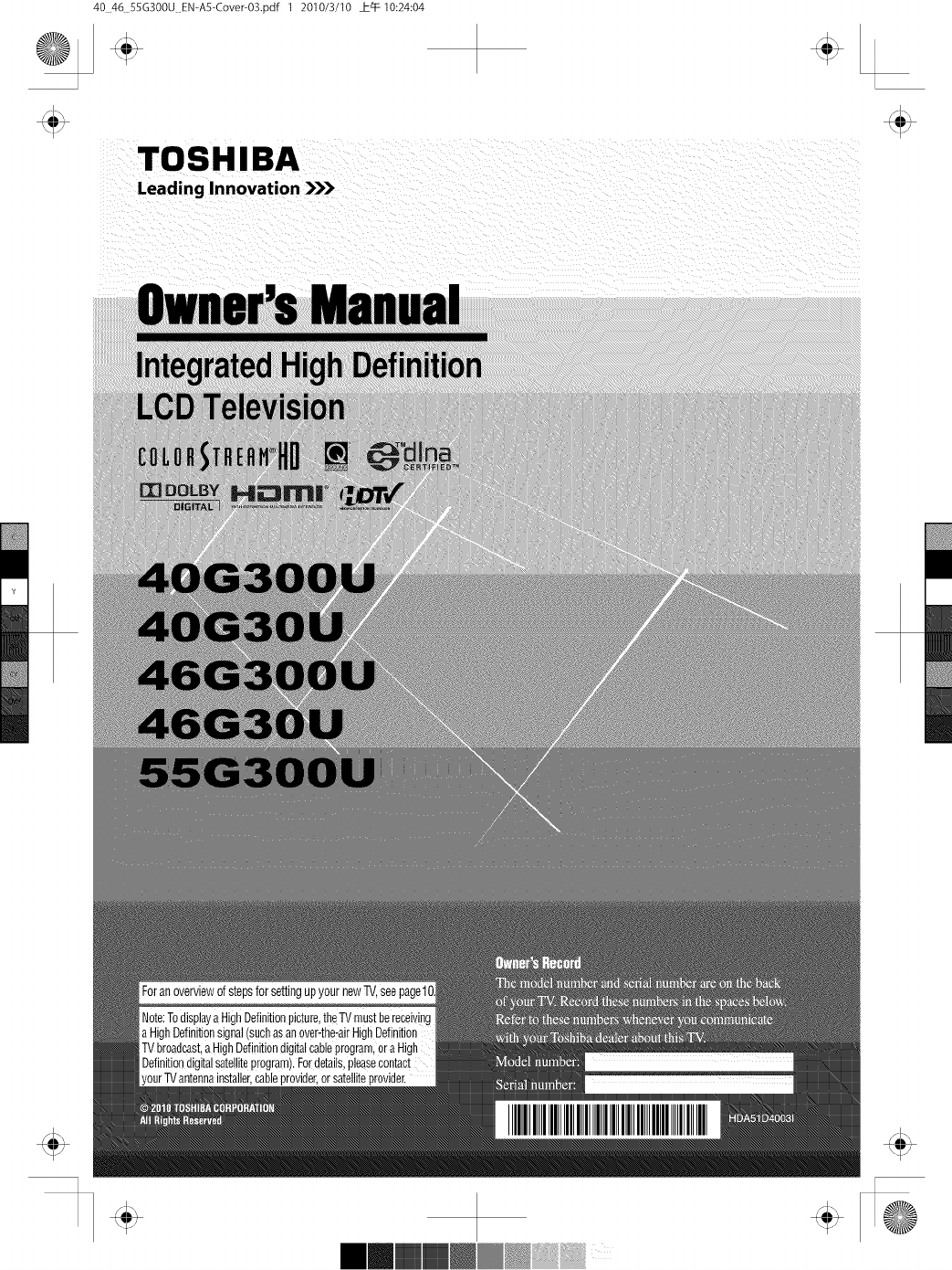 Toshiba 40G300U 1011402L User Manual LCD TELEVISION Manuals And Guides