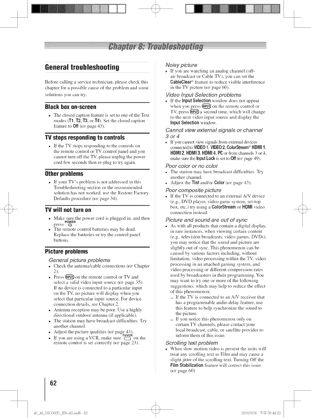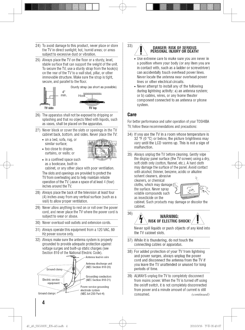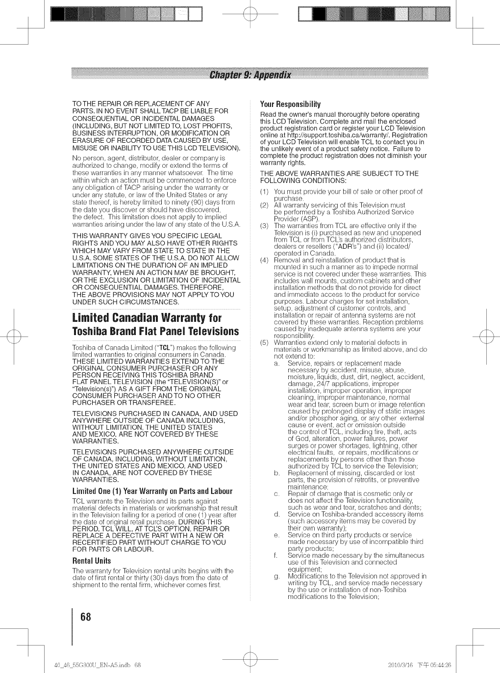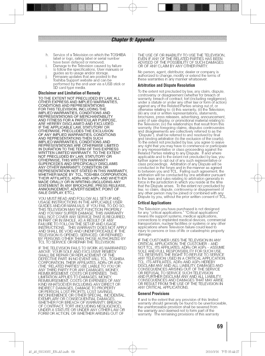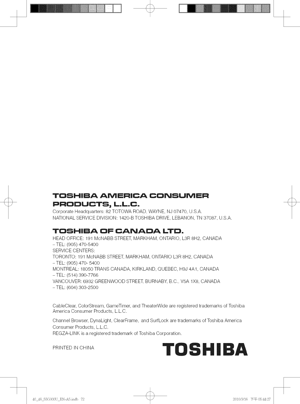 Toshiba 40G300U 1011402L User Manual LCD TELEVISION Manuals And Guides