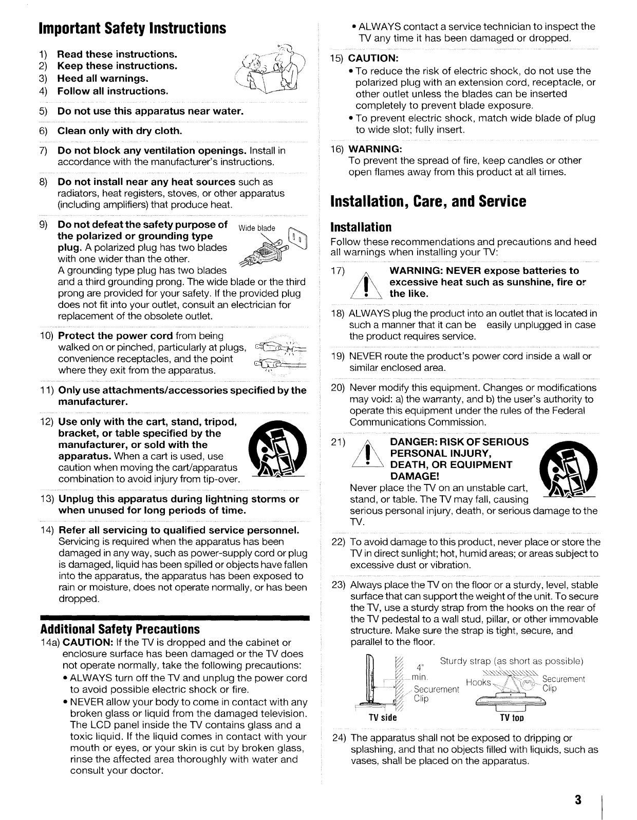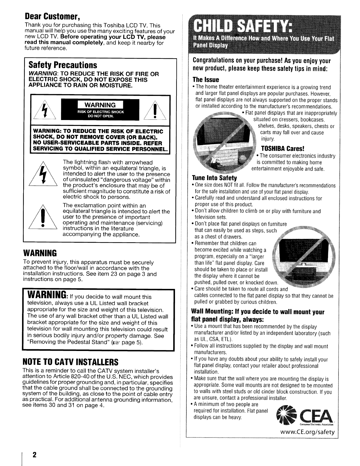 TOSHIBA LCD Television Manual L0909559 TOSHIBA LCD Television Owner's Manual, TOSHIBA LCD Television installation guides