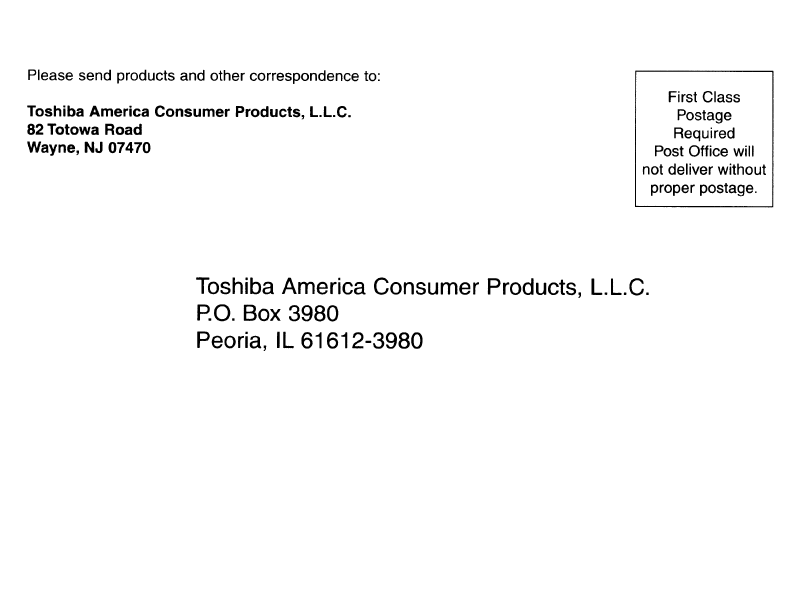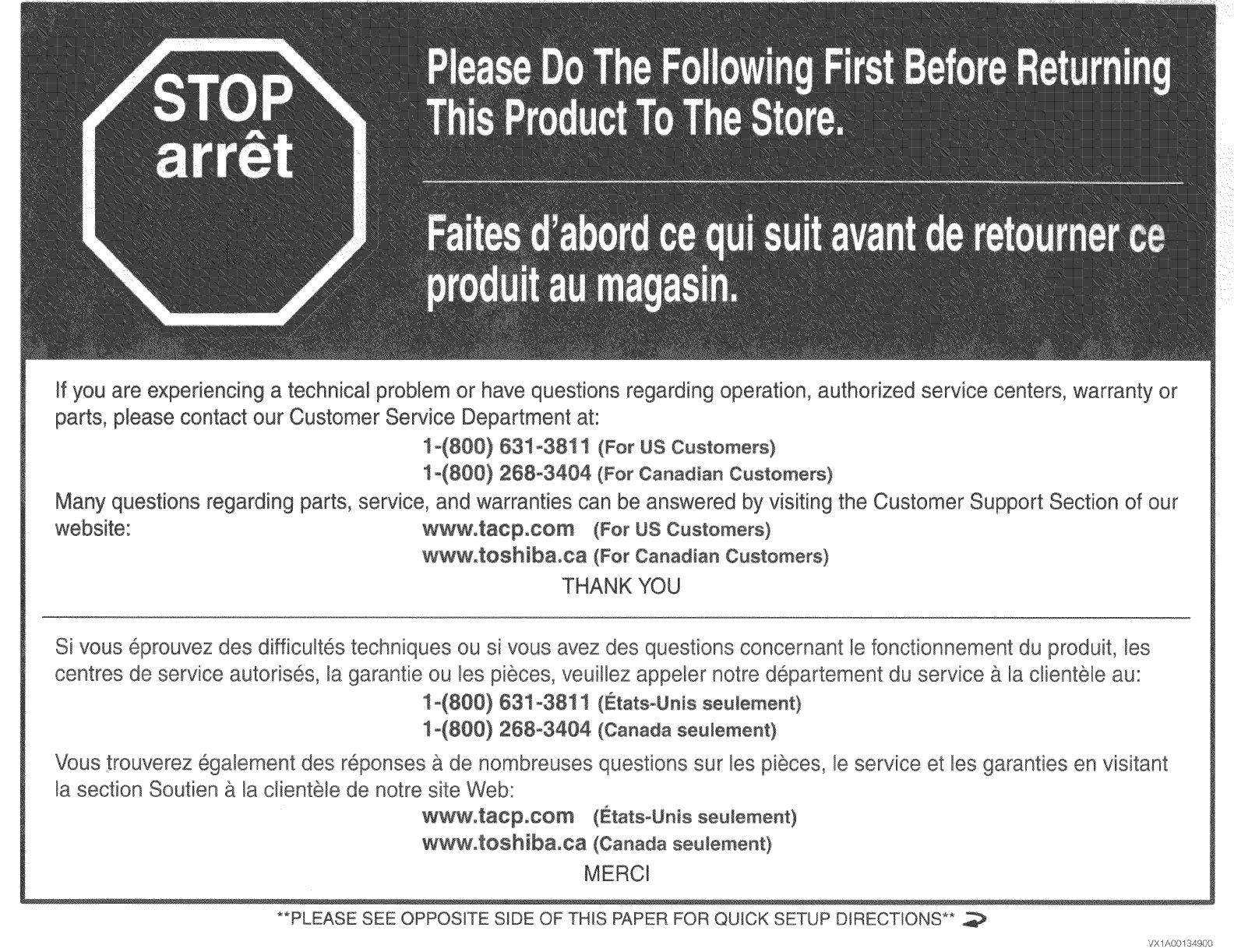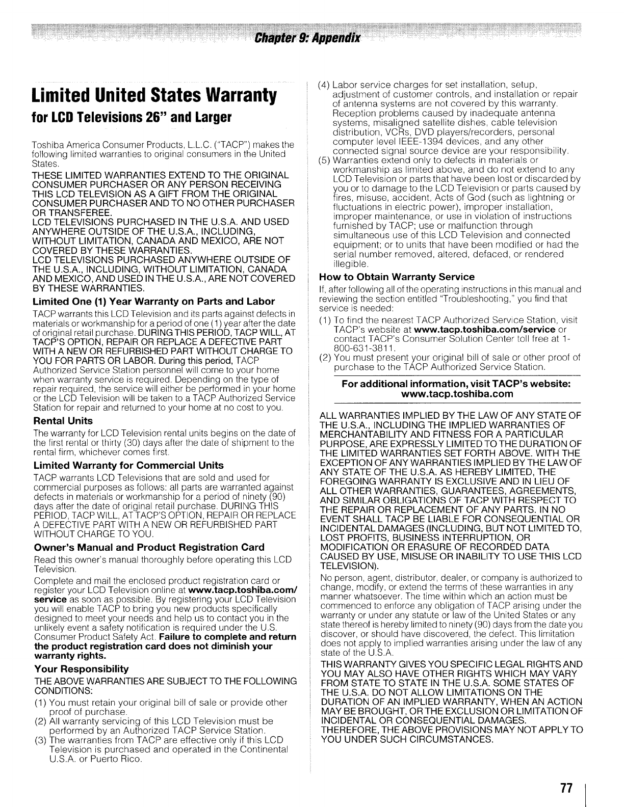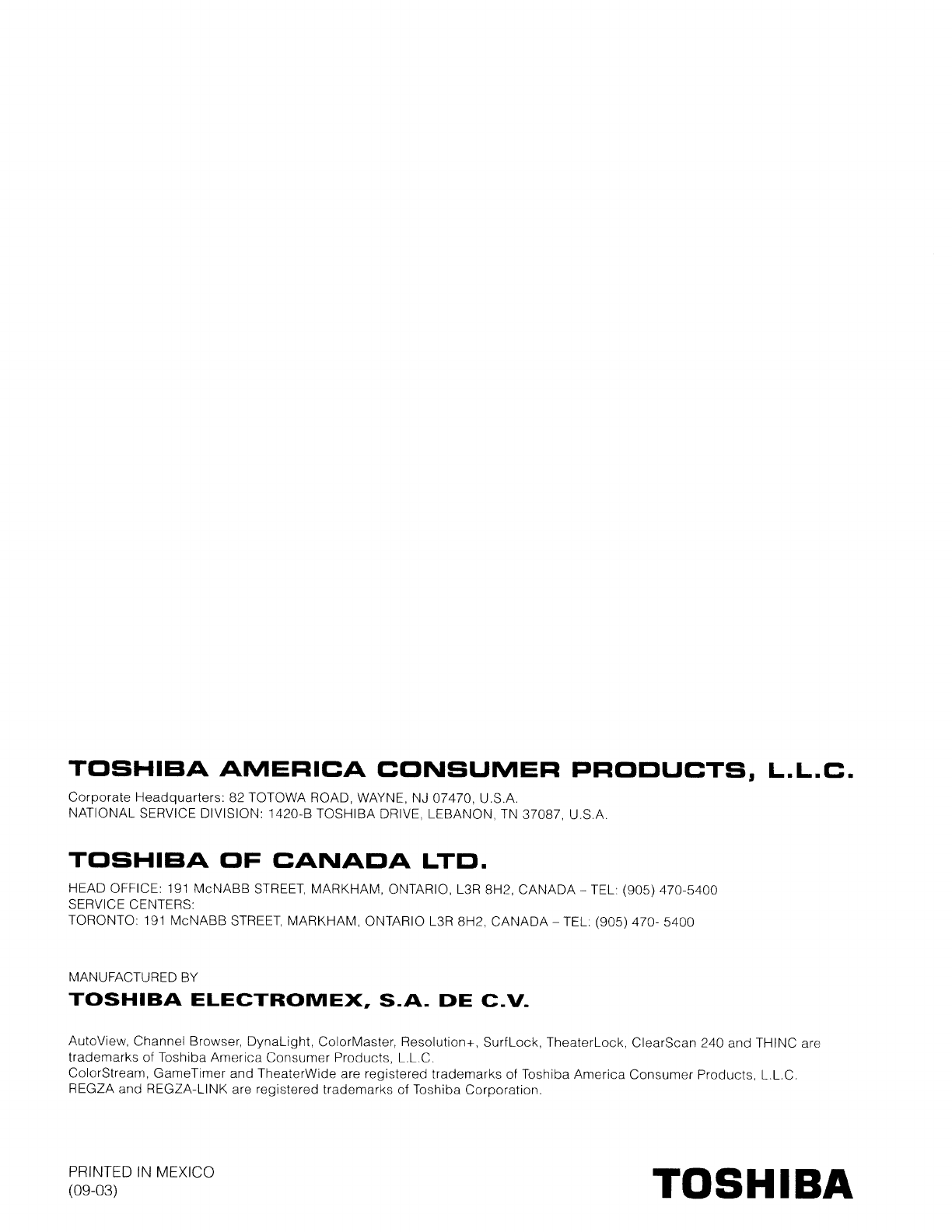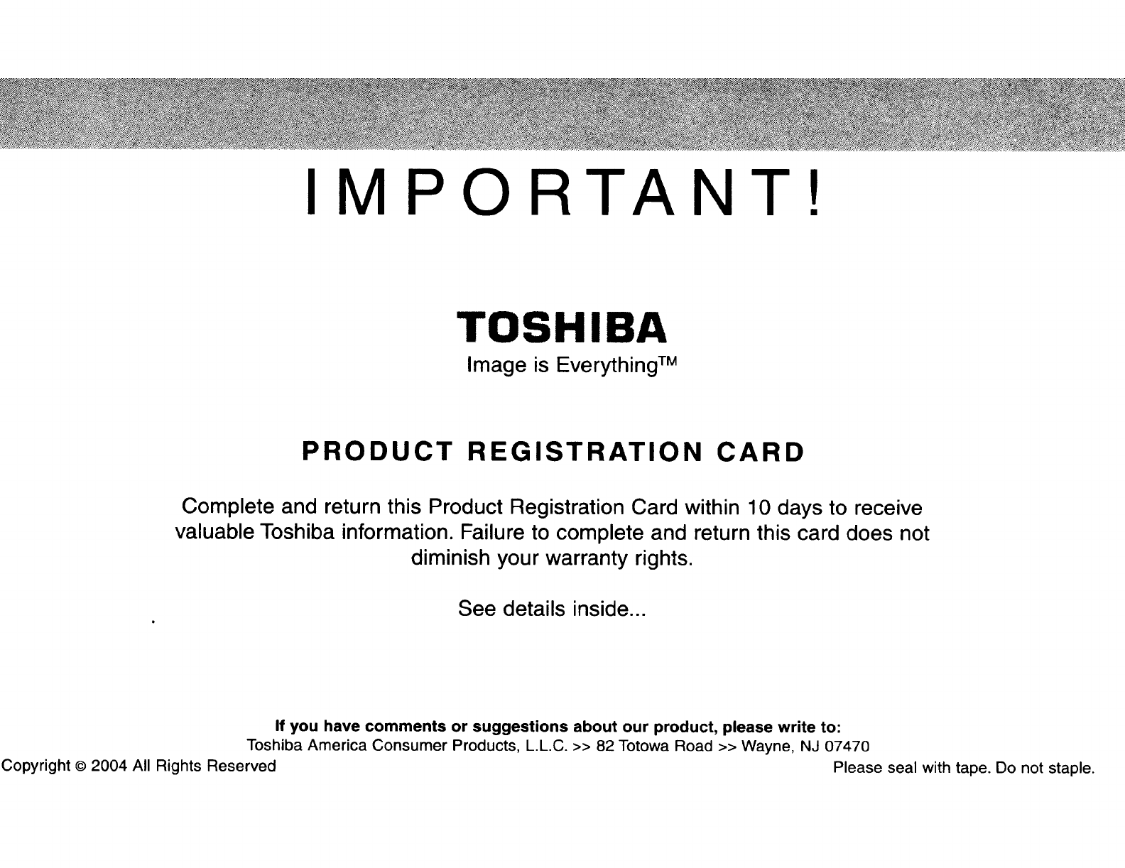IMPORTANT: Please register your product within 10 days by mail or register online @ www.tacp.toshiba.com/register