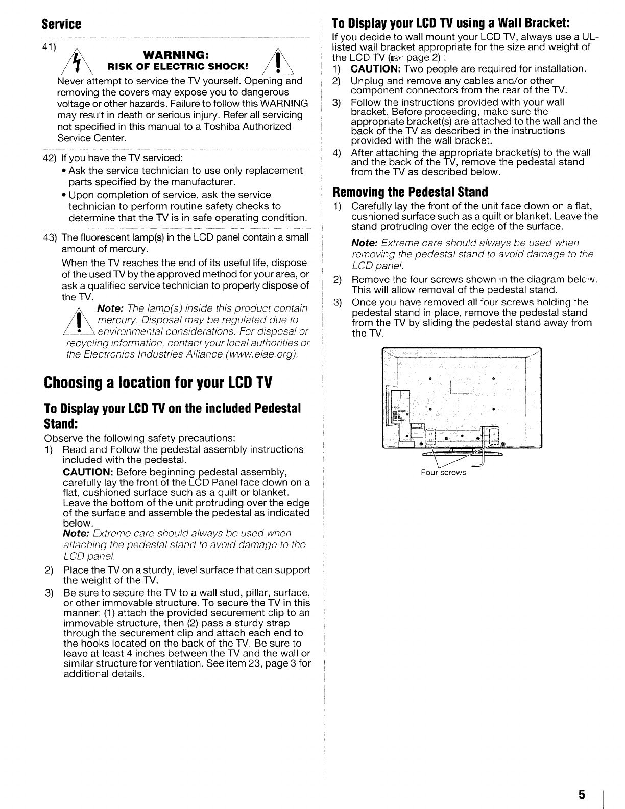 "Removing the Pedestal Stand" (_, page 5).