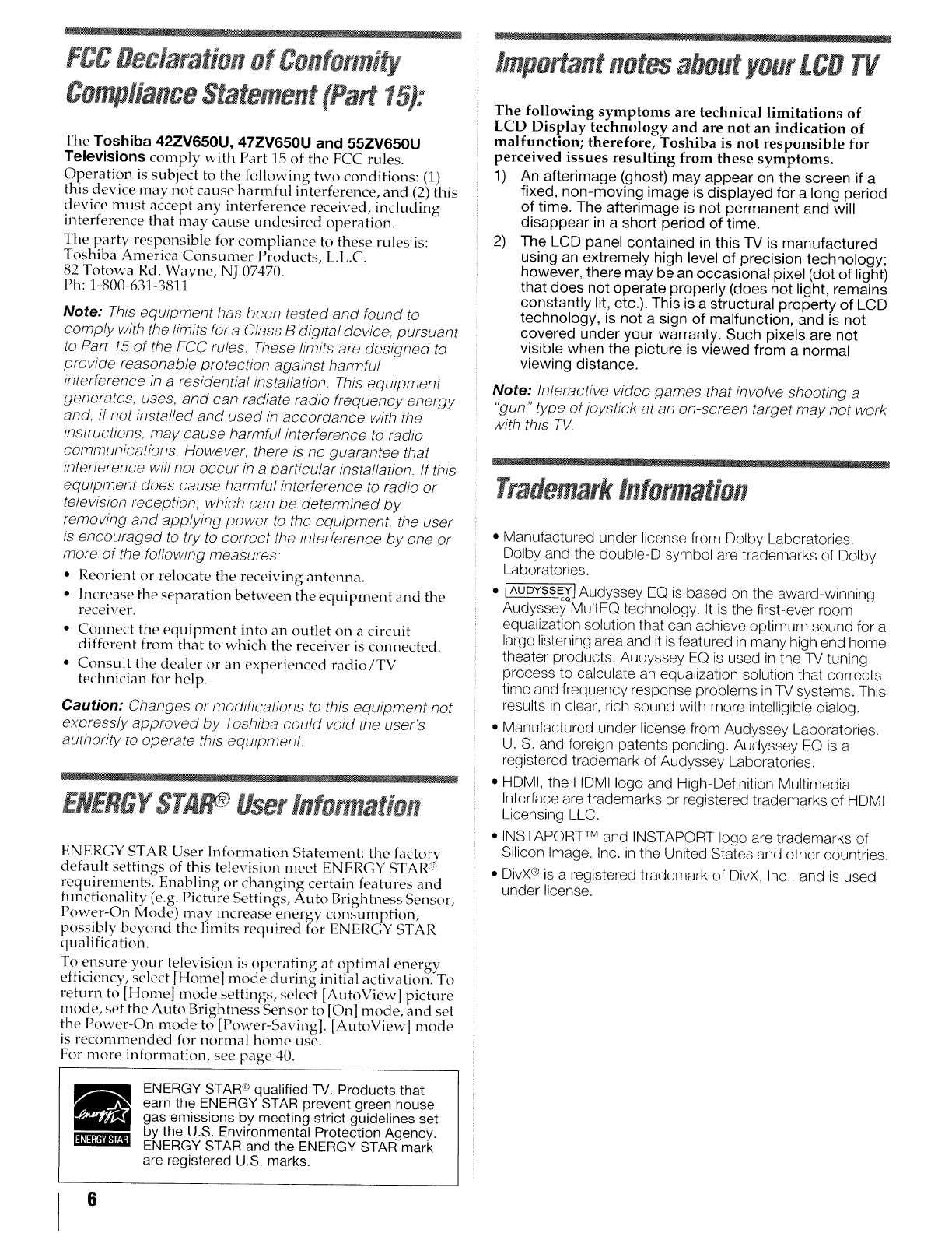 Toshiba 42ZV650U User Manual LCD TV Manuals And Guides L0909559