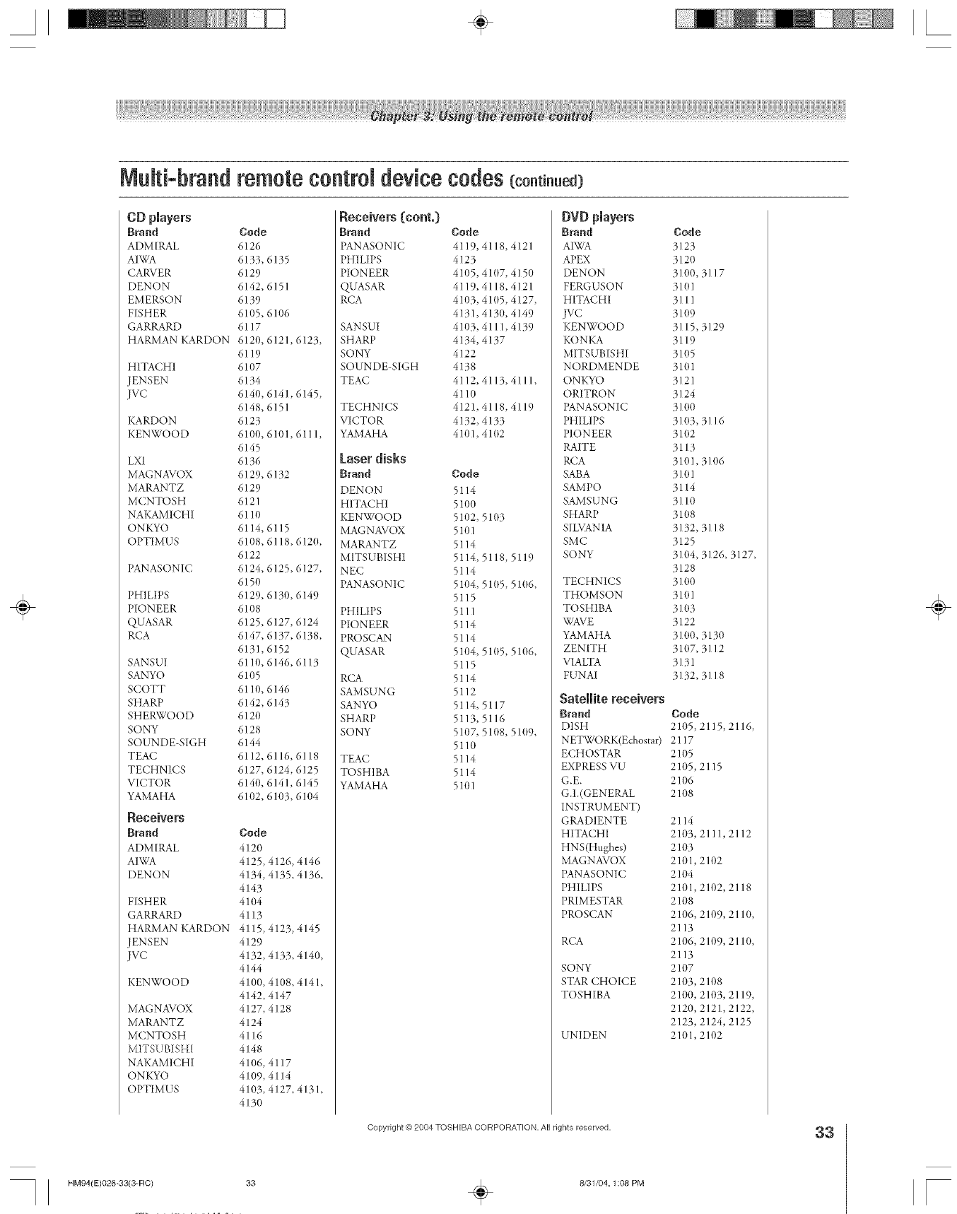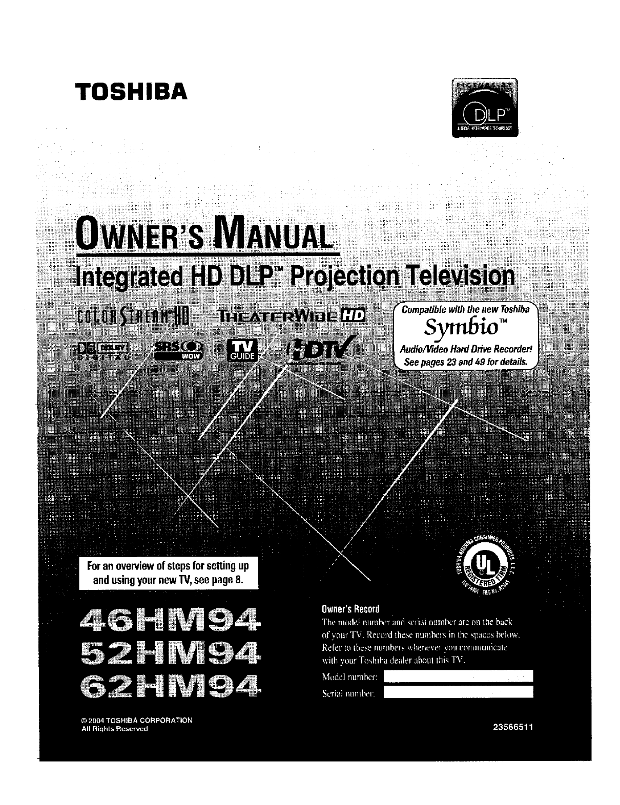 User Manual: Toshiba 46HM94 46HM94 TOSHIBA DLP - Manuals and Guides View the owners manual for your TOSHIBA DLP #46HM94. Home:Electronics Parts:Toshiba Parts:Toshiba DLP Manual