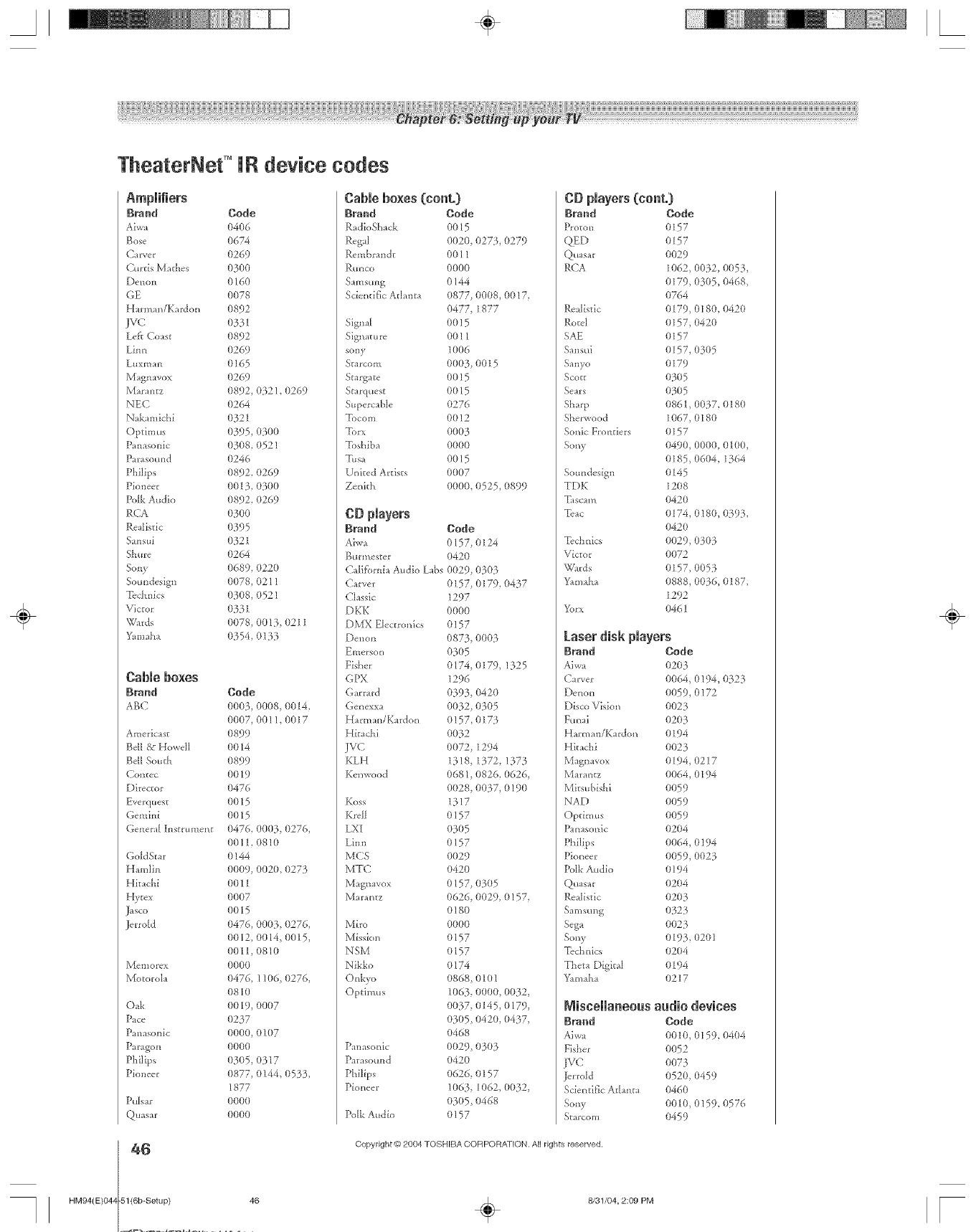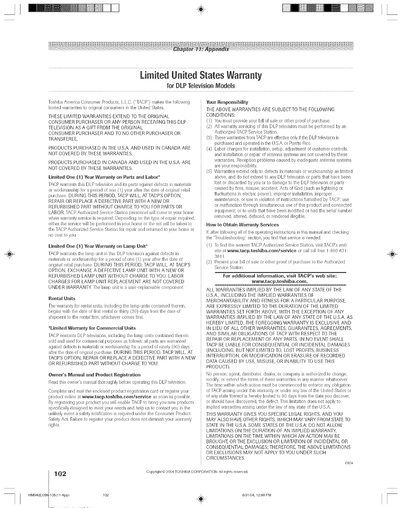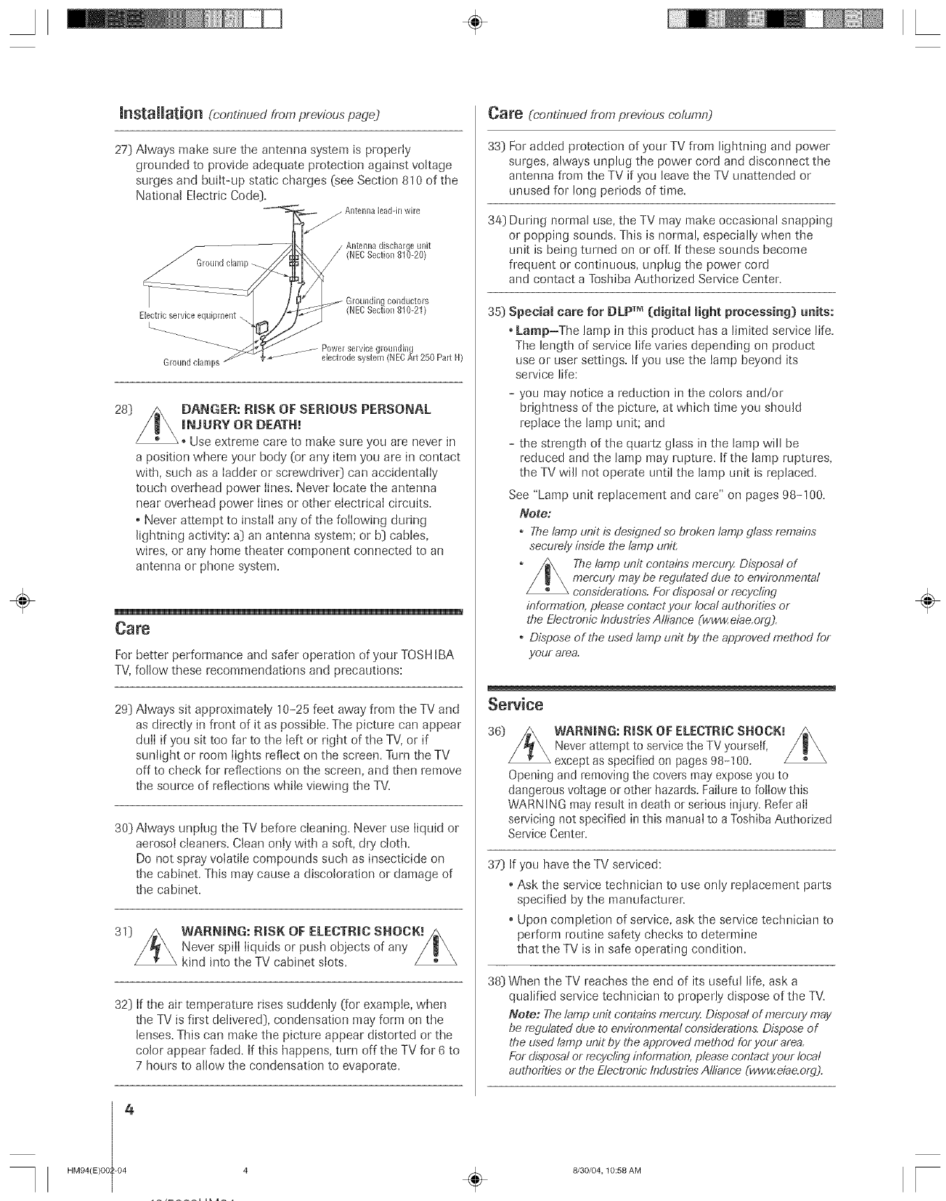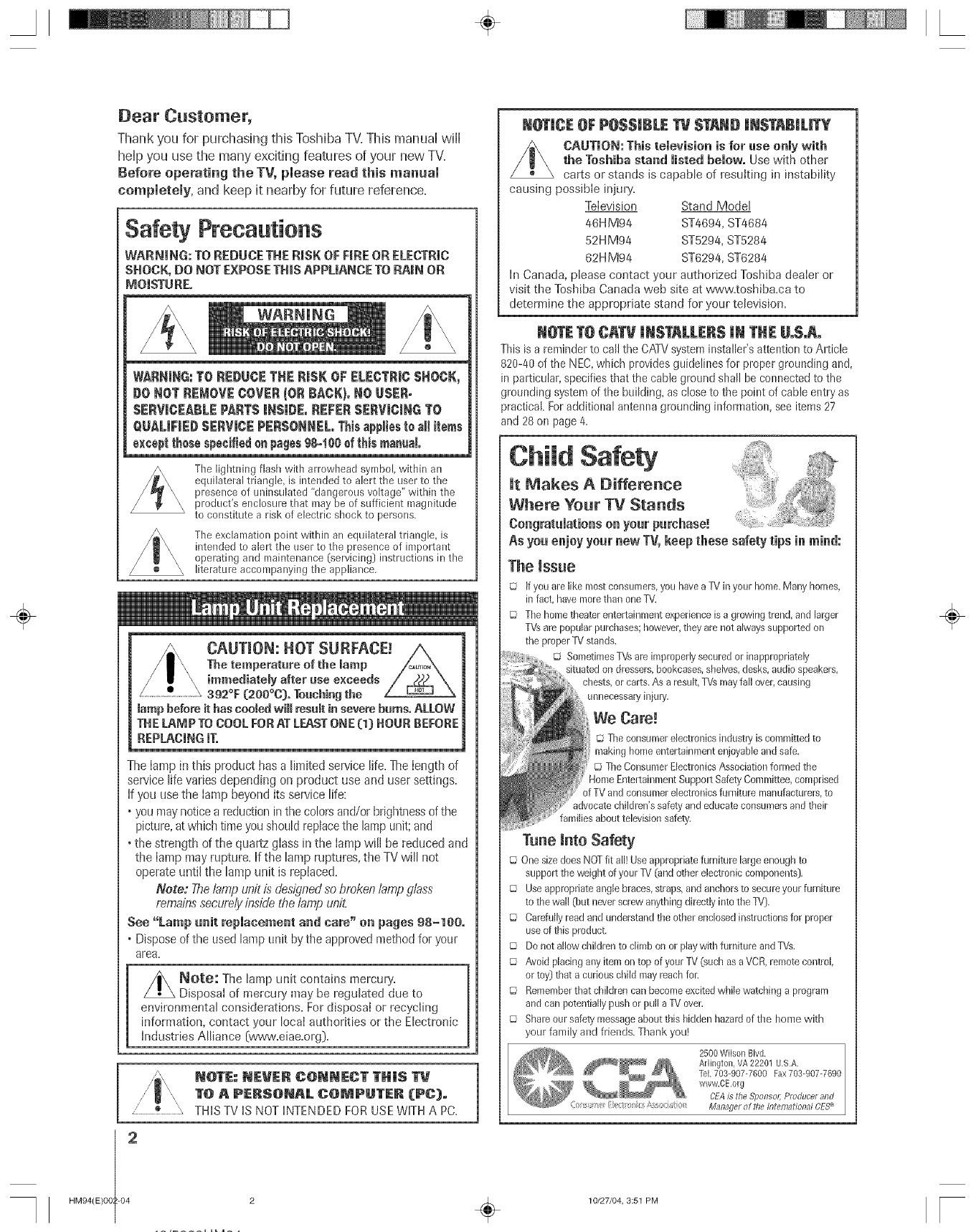Toshiba 46HM94 User Manual DLP Manuals And Guides L0523085