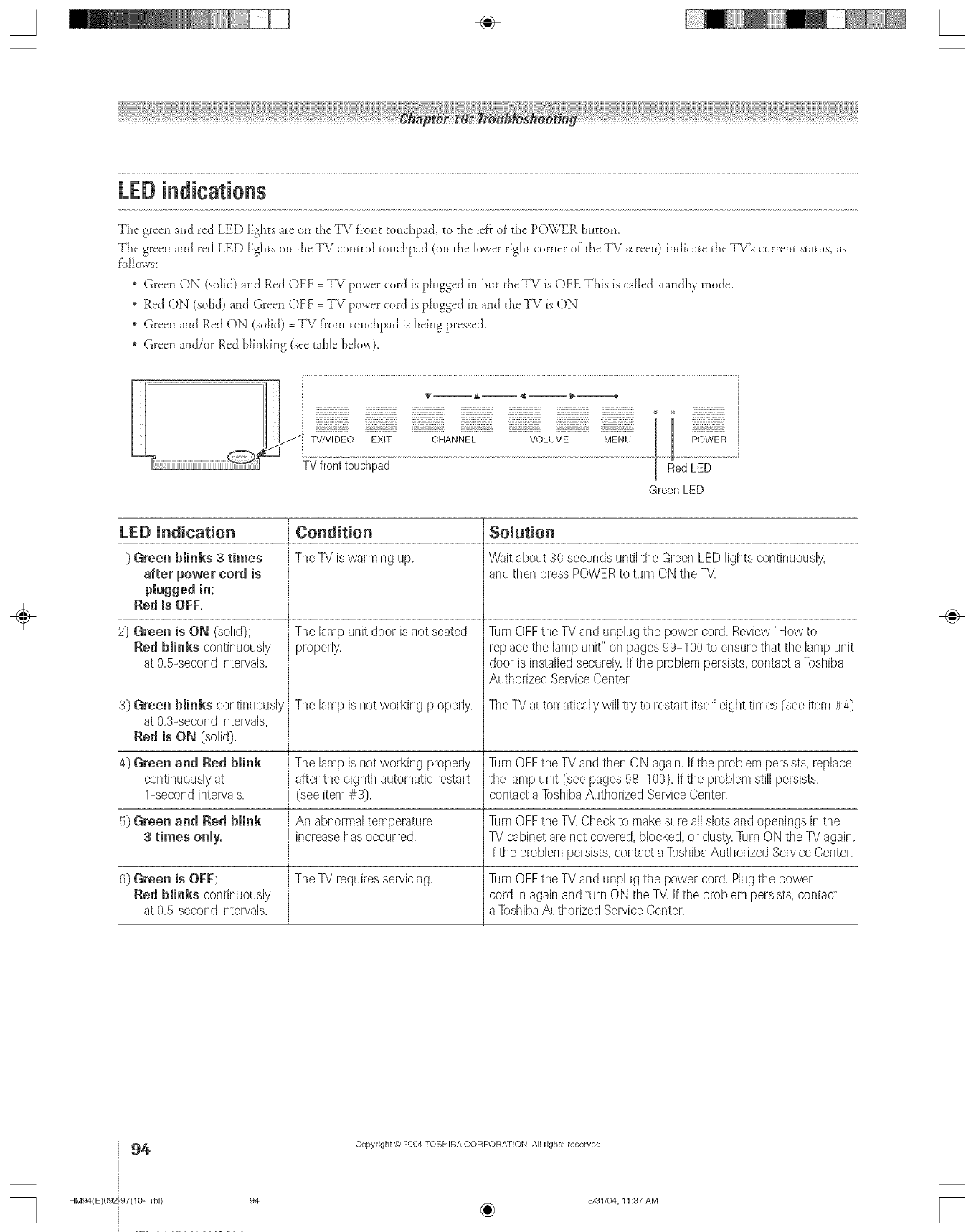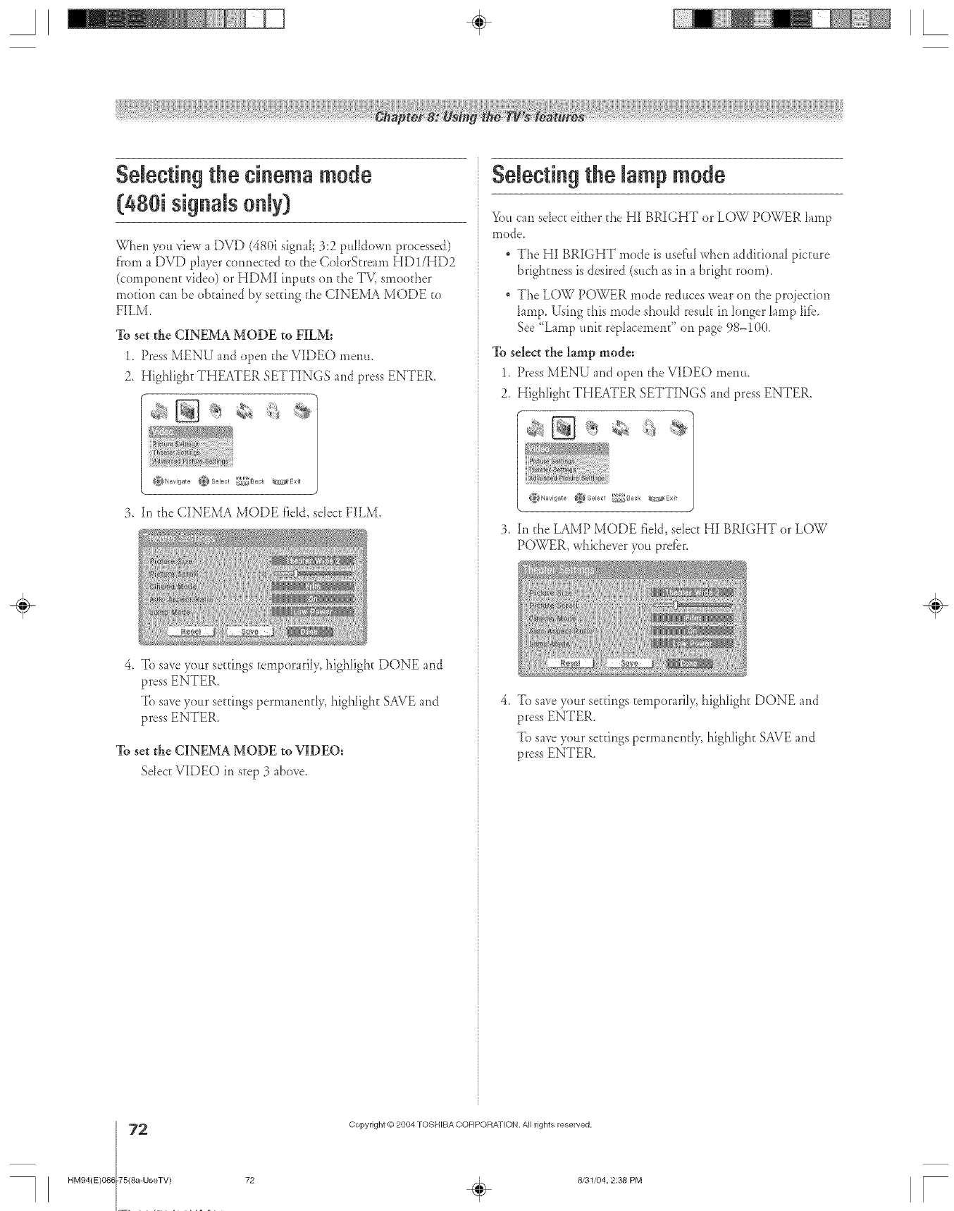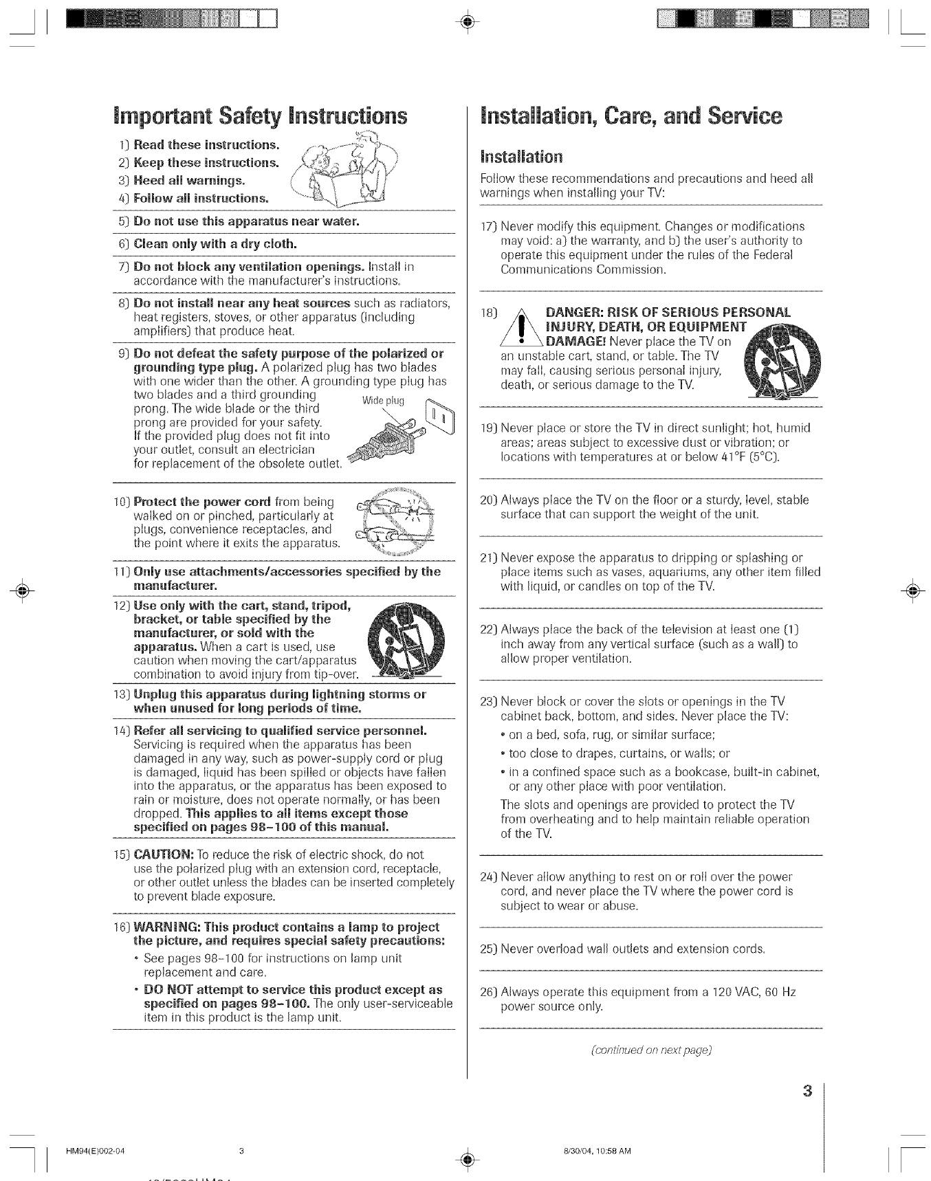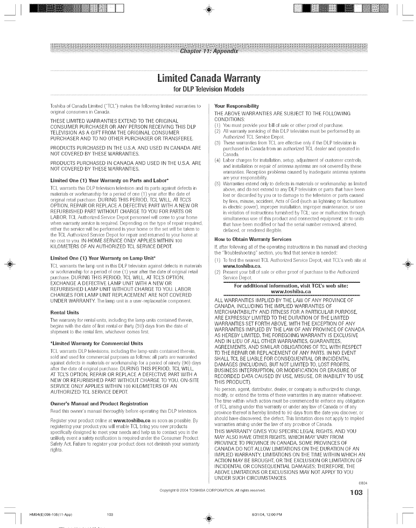 Toshiba 46HM94 User Manual DLP Manuals And Guides L0523085