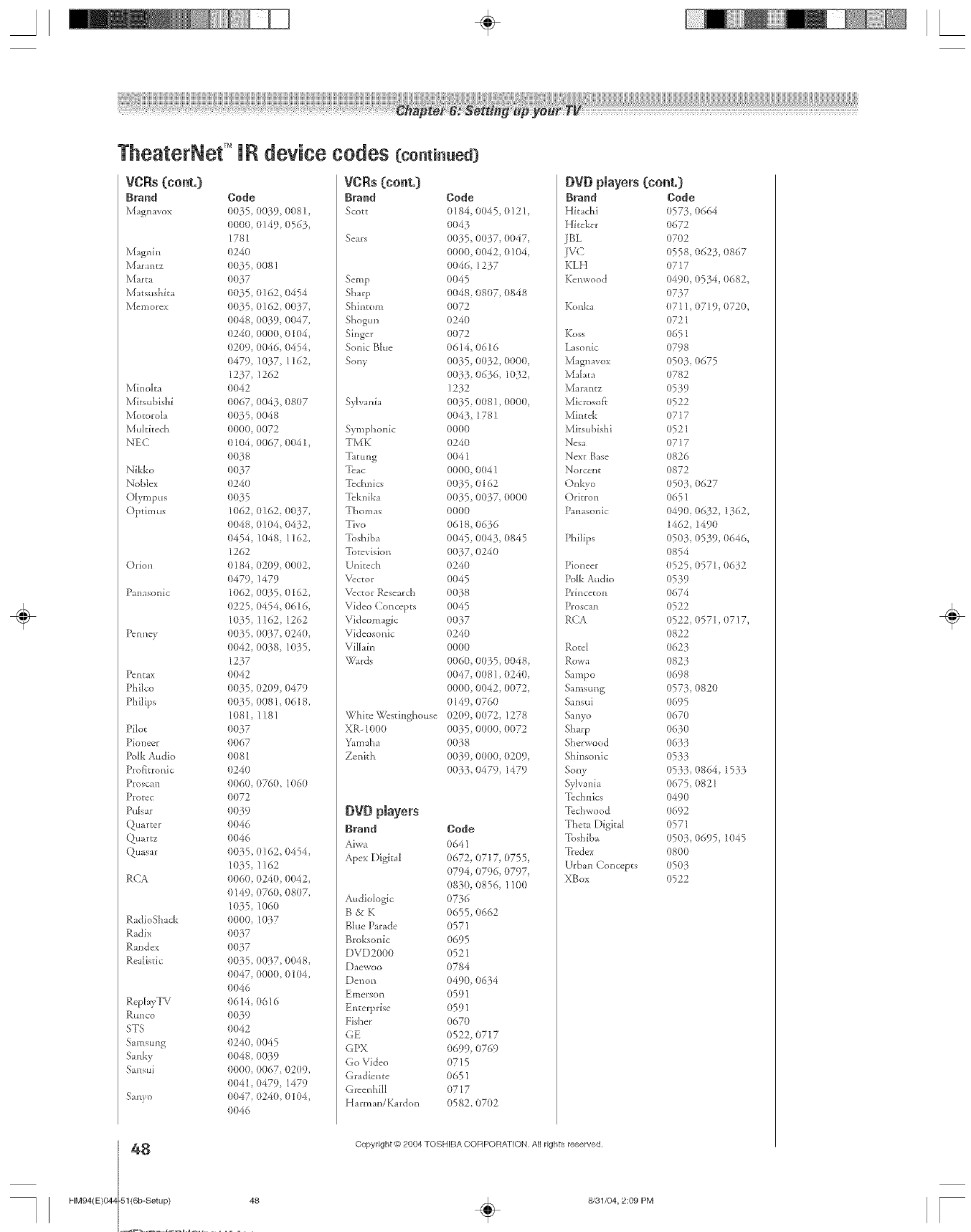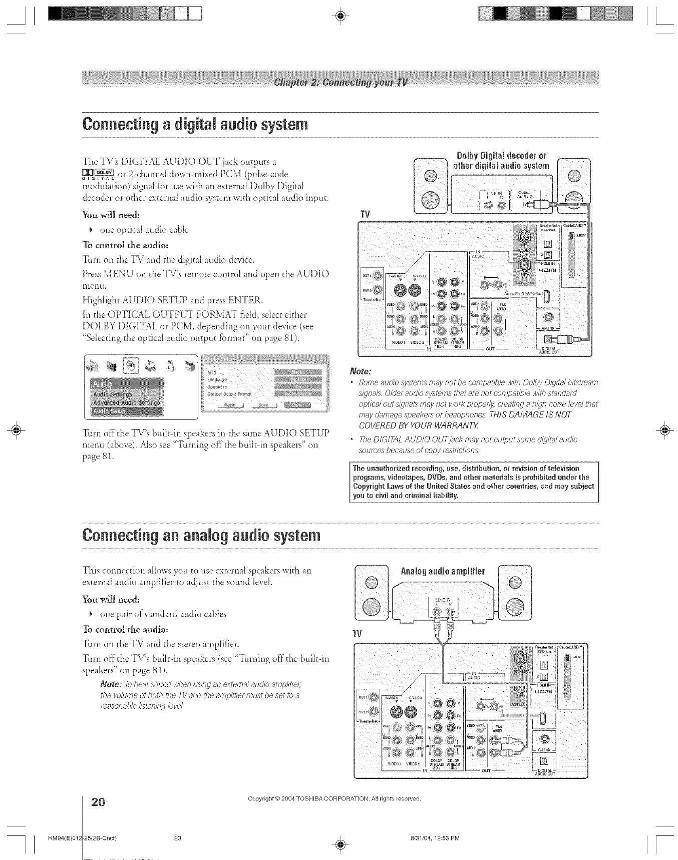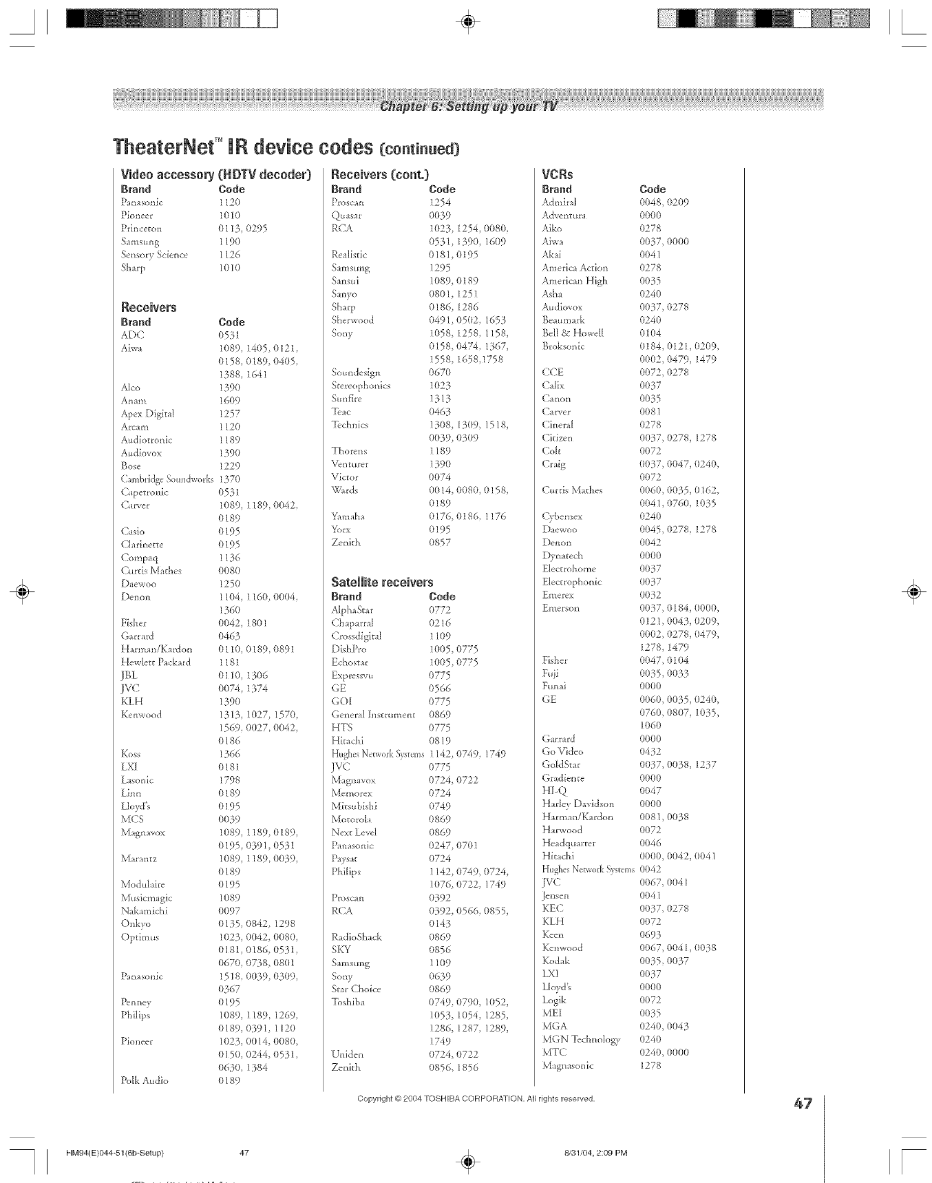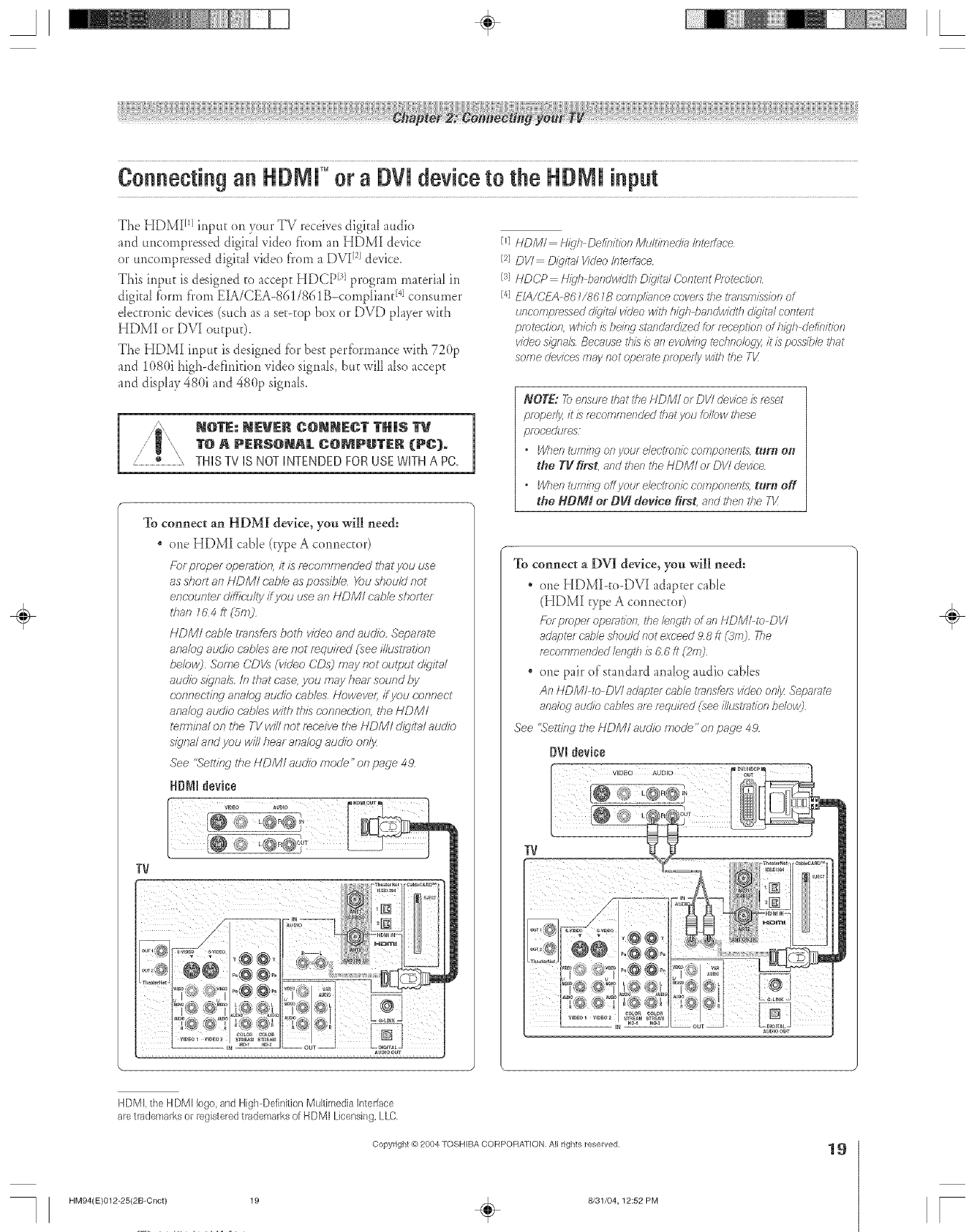 Toshiba 46HM94 User Manual DLP Manuals And Guides L0523085
