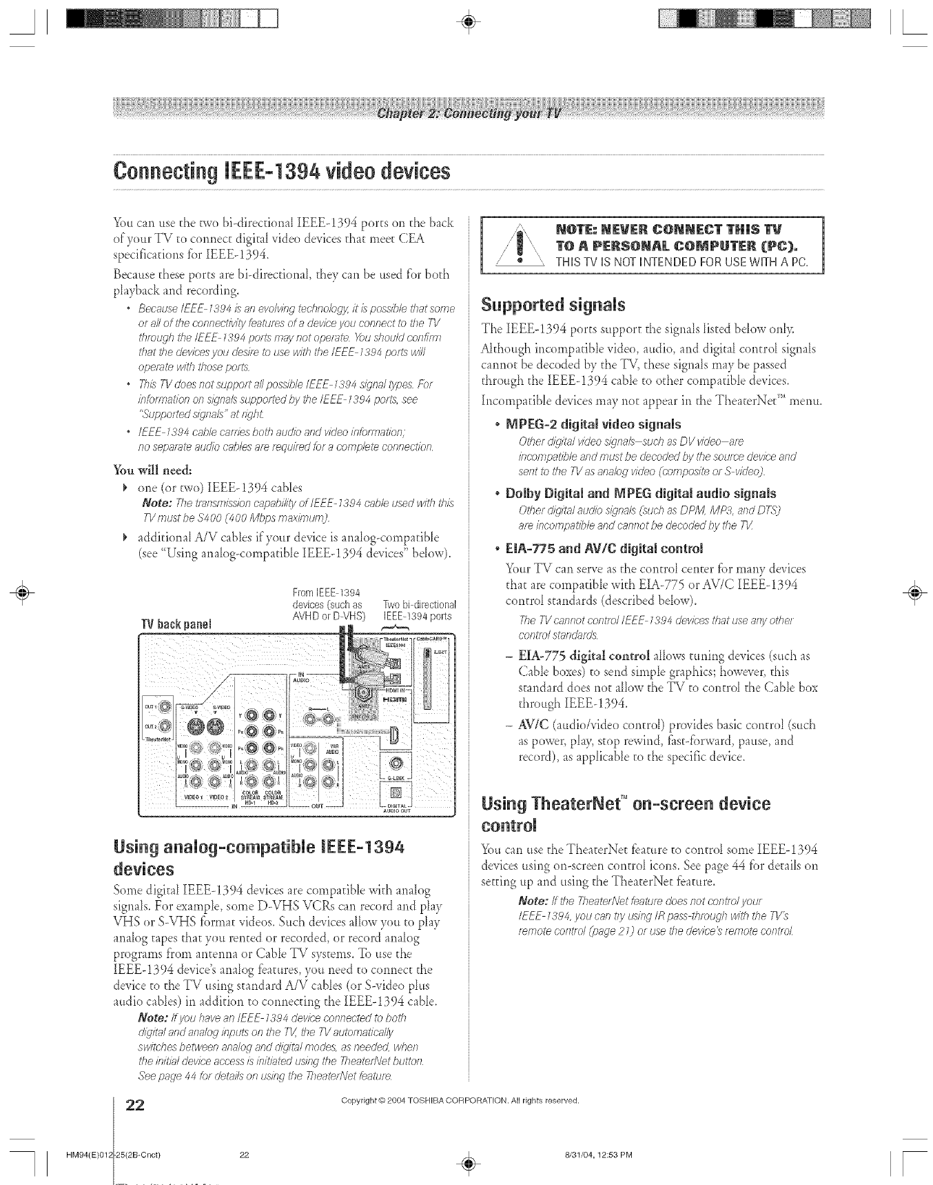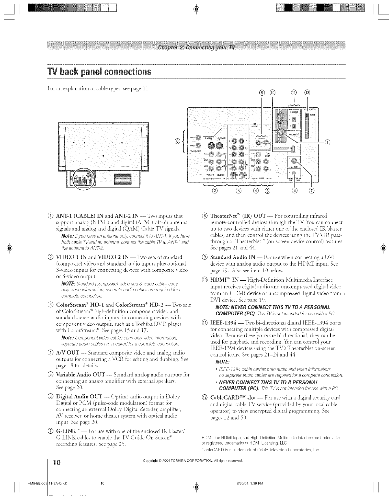 CabbCiear, GameThner,SurfLock Symbio, arid TheaterNet are trademarks of Toshiba America Consumer Plx>ducts,LLC