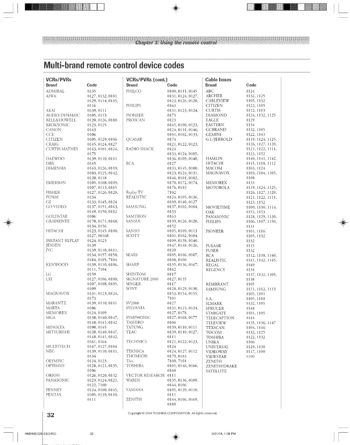 Device code table ........................................................32-33
