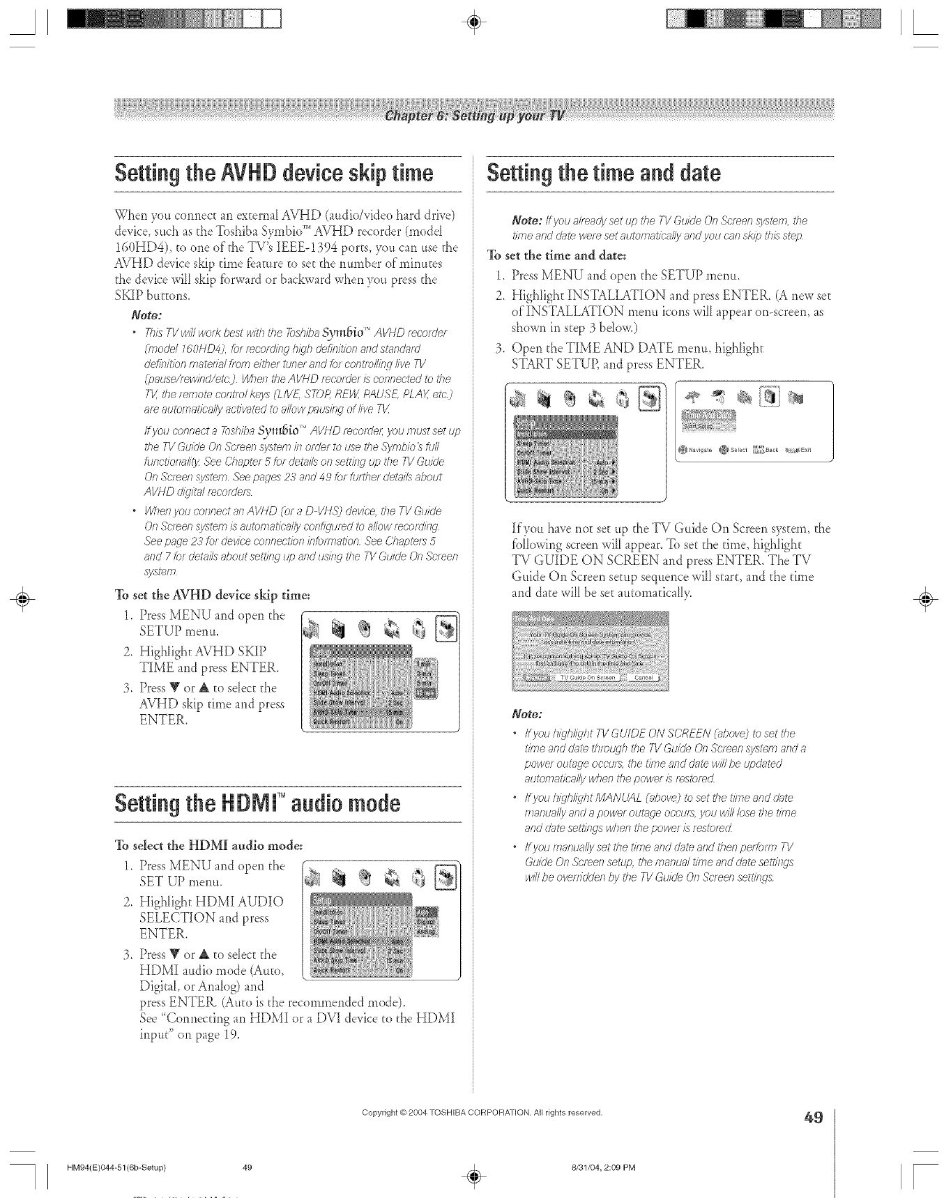 Time and Date setting ............................................................49