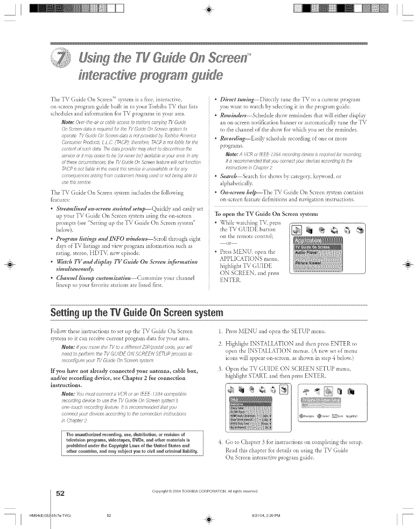 TV Guide On Screen :_...............................................25, 36, 53