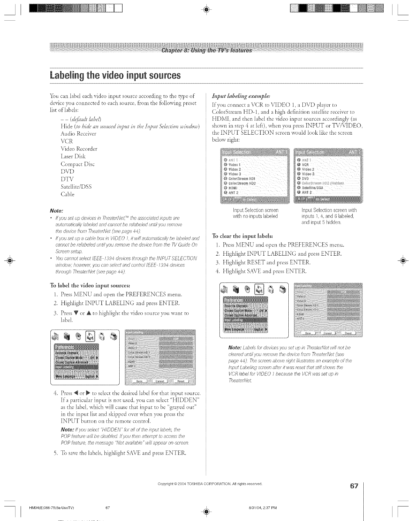 Video input labels ....................................................................67